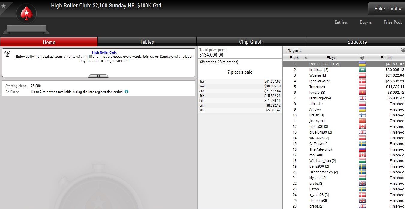 Ebenfalls stark war der dritte Platz von Thomas „WushuTM“ Mühlöcker beim $2.100 Sunday Highroller, wo er sich nur „Remi Lebo_10“ und „limitless“ beugen musste. Gut $21.000 waren der verdiente Lohn für diese Spitzenplatzierung.
