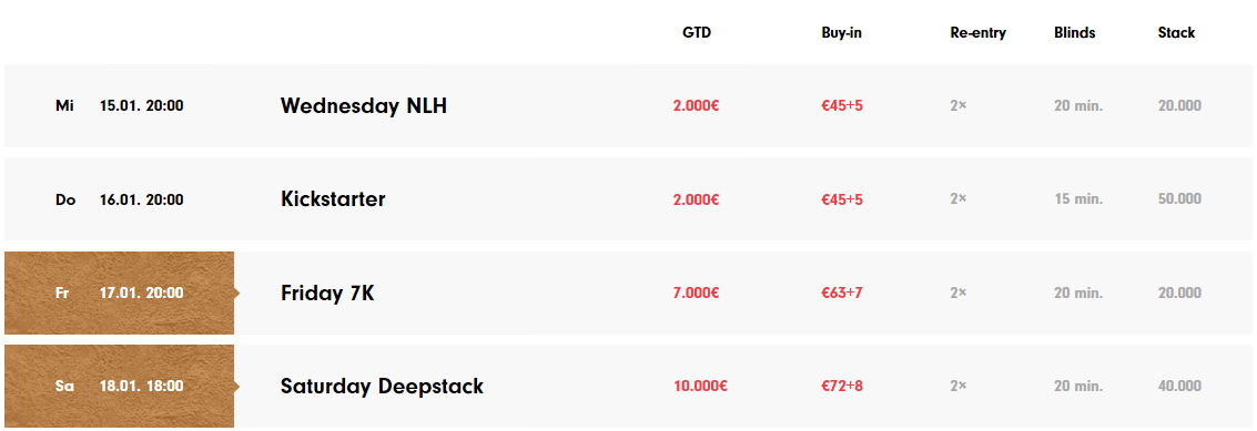Der Grand Casino Asch Turnierplan in der kommenden Woche