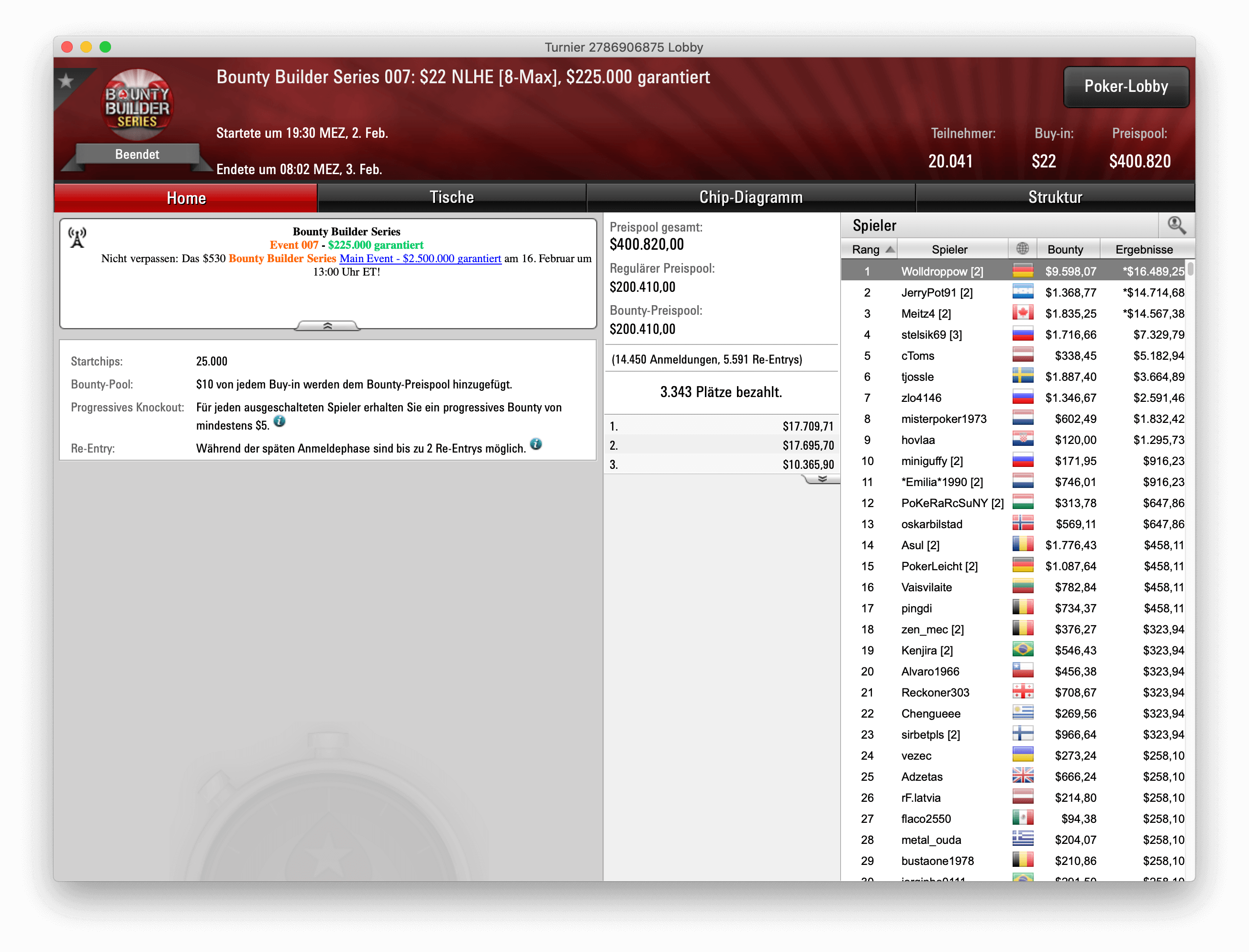 Gestern startete die Bounty Builder Series auf PokerStars, bei den es nun täglich ein großes Angebot an KO-Turnieren von Micro-Buy-Ins bis hin zu Highroller-Turnieren gibt. Am gestrigen ersten Spieltag ging es direkt heiß her.