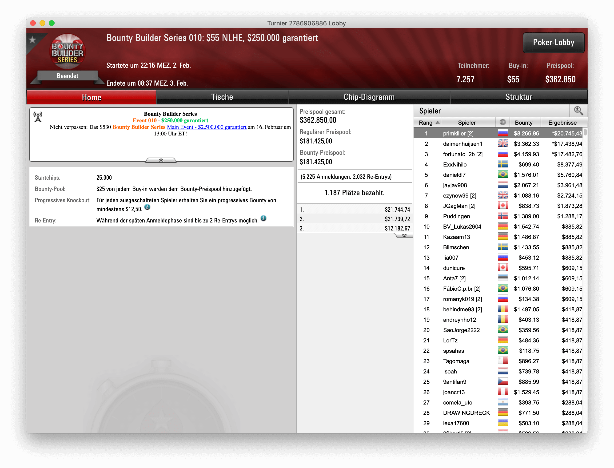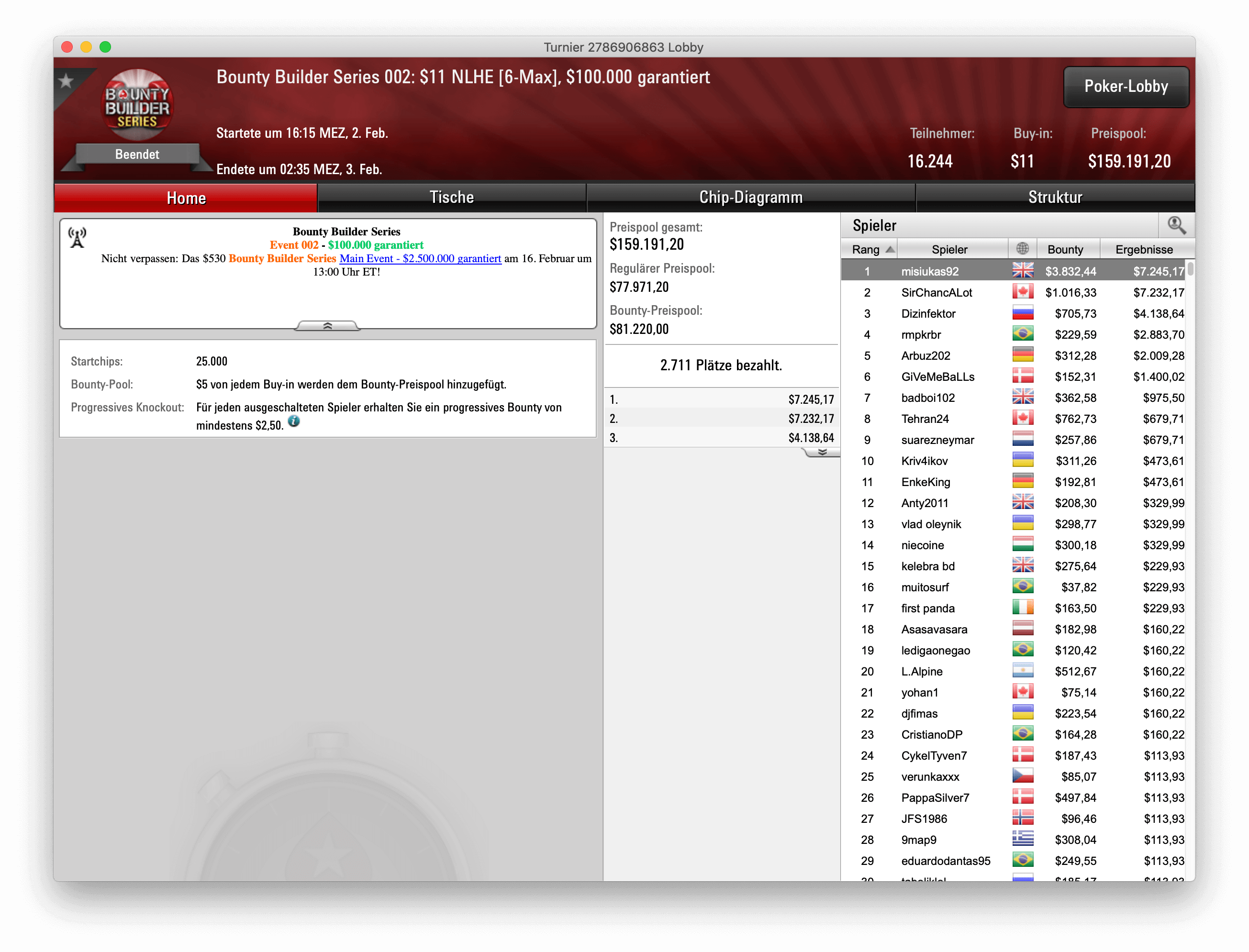 Gestern startete die Bounty Builder Series auf PokerStars, bei den es nun täglich ein großes Angebot an KO-Turnieren von Micro-Buy-Ins bis hin zu Highroller-Turnieren gibt. Am gestrigen ersten Spieltag ging es direkt heiß her.