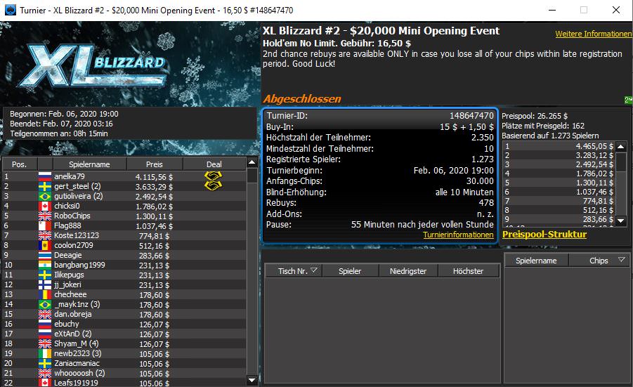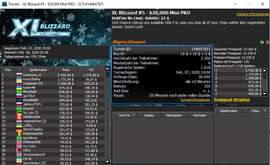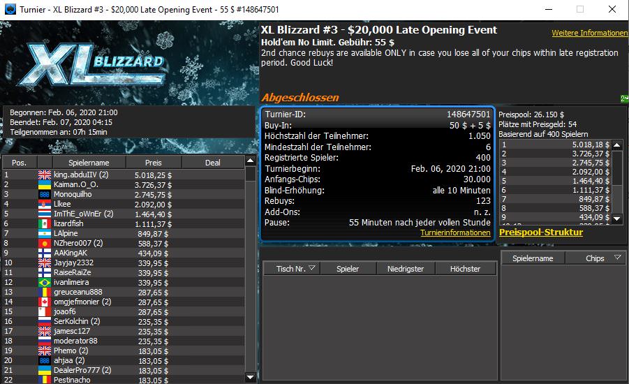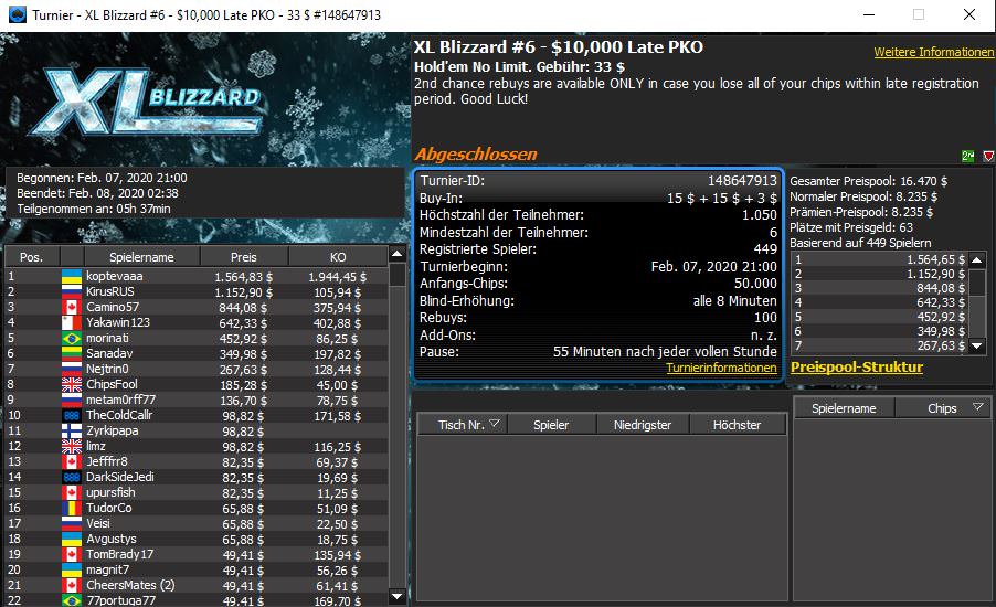 Auch bei 888poker läuft aktuell mit der XL Blizzard eine sehr lukrative Turnierserie, bis zum 16. Februar sind insgesamt 34 Events mit einem garantierten Gesamtpreispool in Höhe von $1.445.000 im Angebot. Die ersten sechs Turniere sind bereits entschieden und direkt zum Auftakt gab es den ersten Sieg für einen deutschen Pokerspieler.