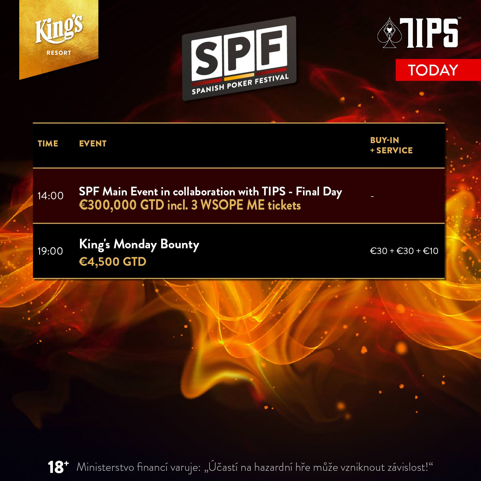 Und hier das heutige Programm im King’s mit dem Finale des SPF Main Event: