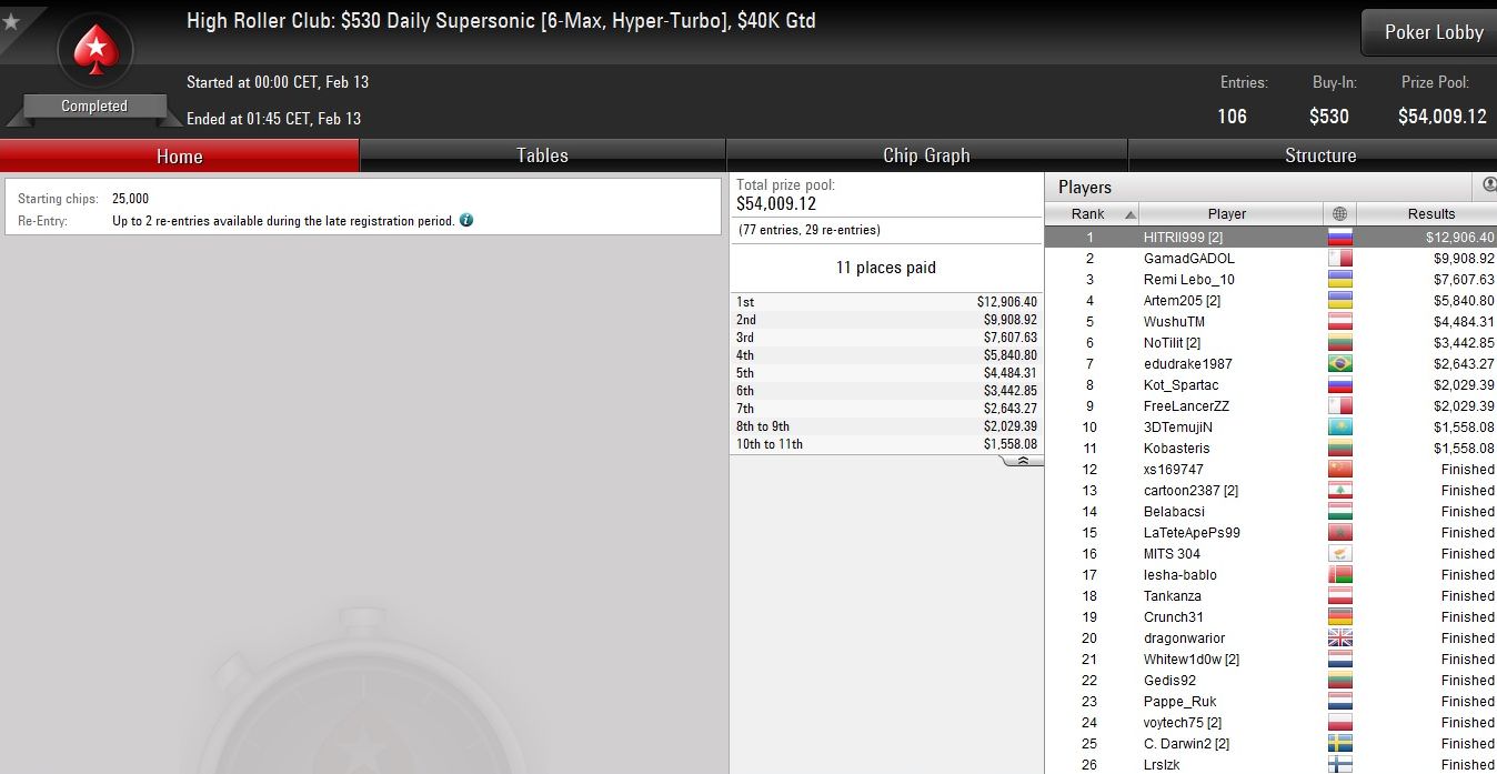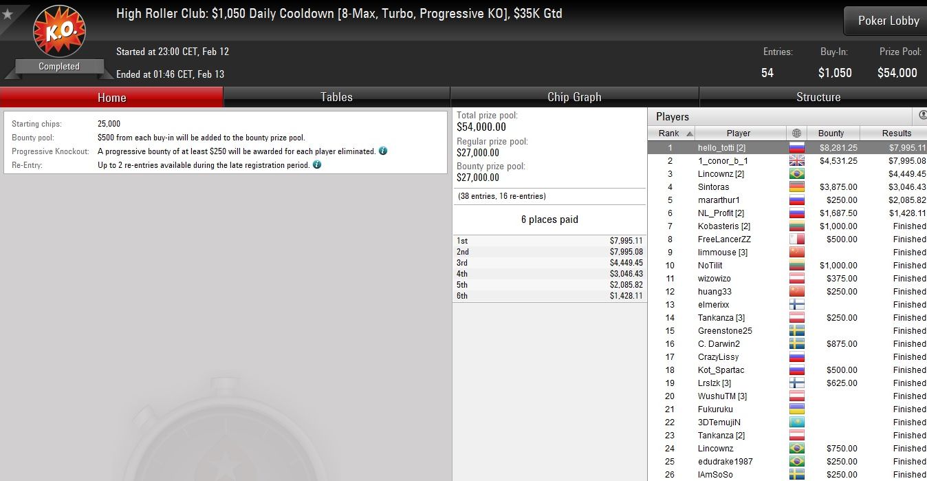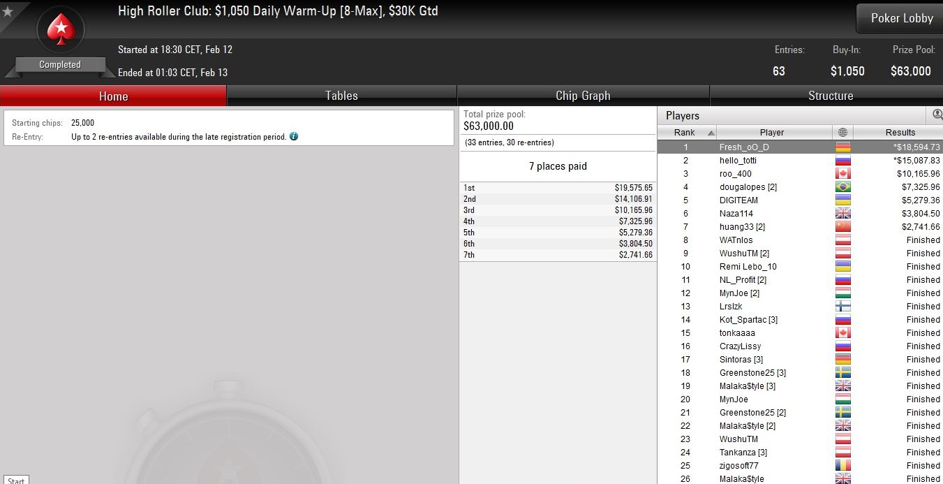 Vergangene Nacht triumphierte der Allrounder beim $1.050 Highroller Warm-Up auf PokerStars und ließ dabei 62 Konkurrenten hinter sich.