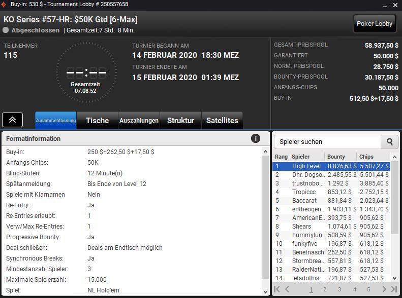 Bei der partypoker KO Series standen am Freitag die Events 57 bis 60 auf dem Spielplan, wie gewohnt wurde alle vier Events mit drei verschiedenen Buy-ins angeboten.