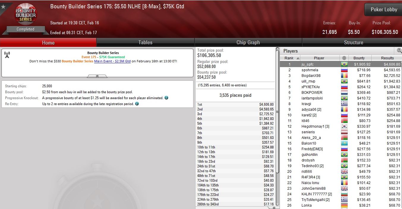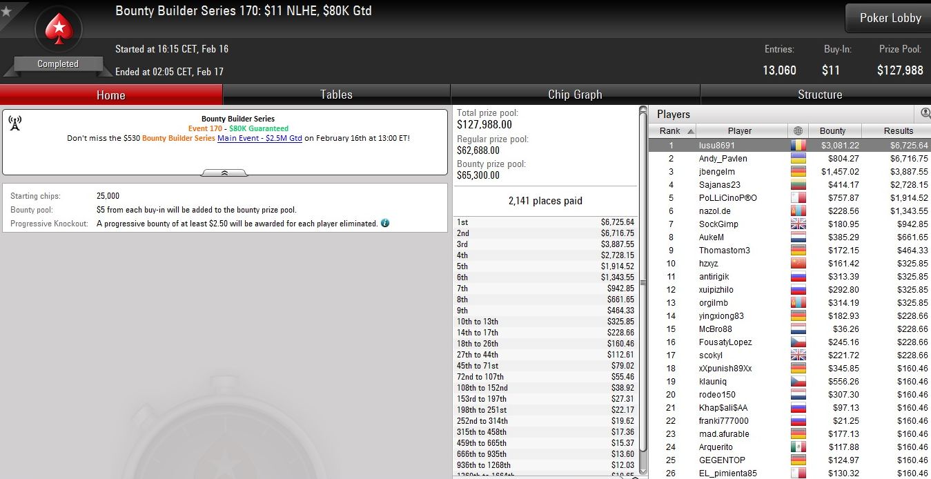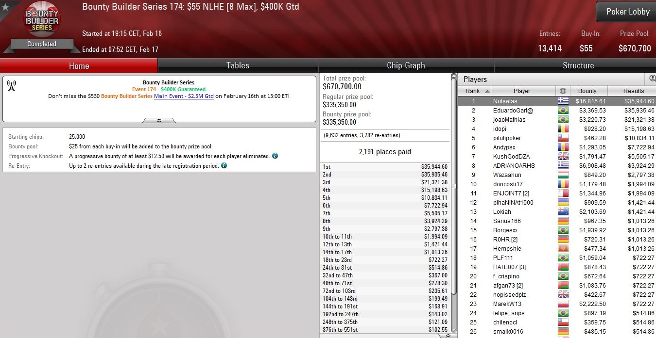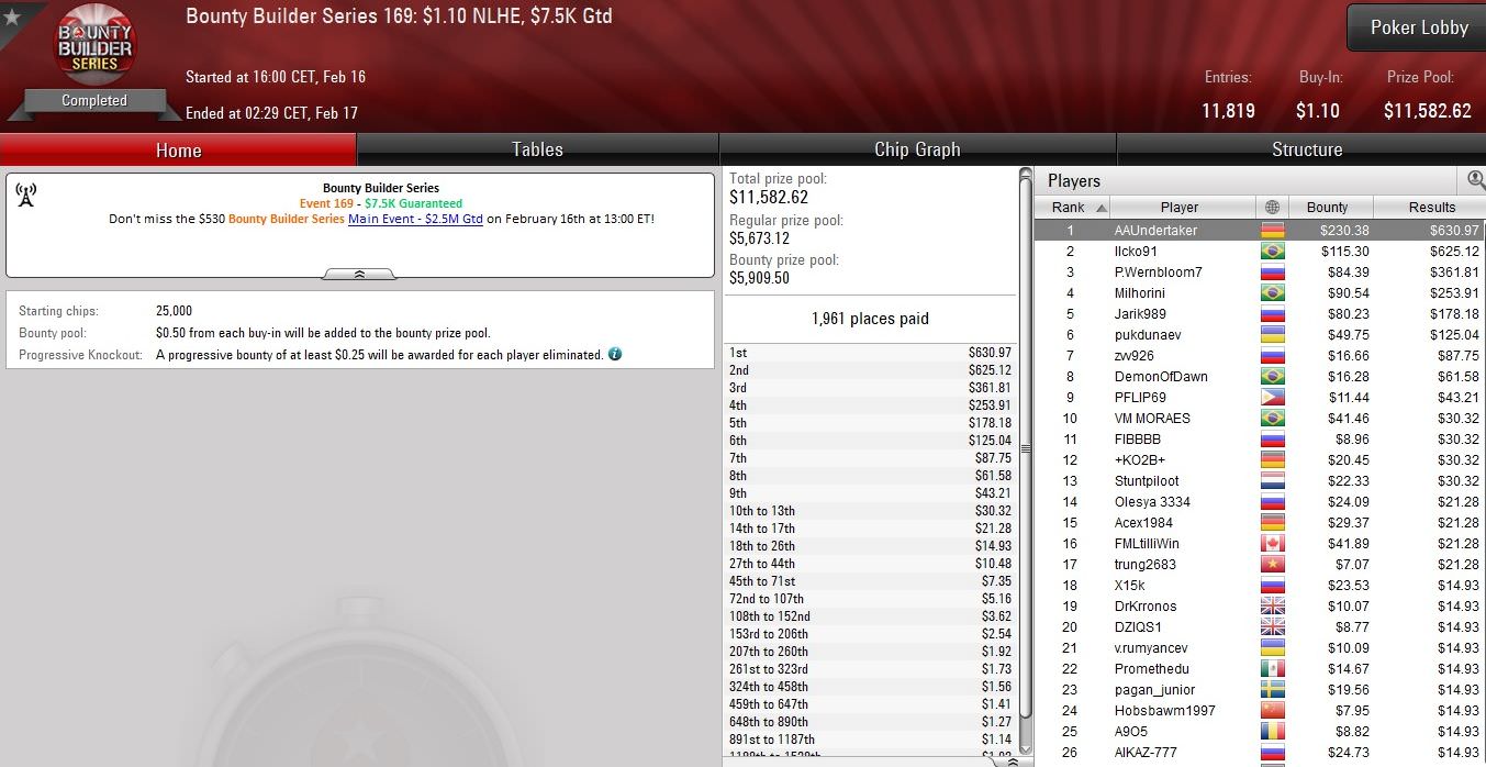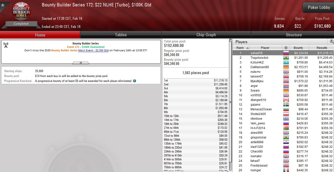Noch einmal zwölf Turniere standen zum Abschluss der Bounty Builder Series auf PokerStars an.
