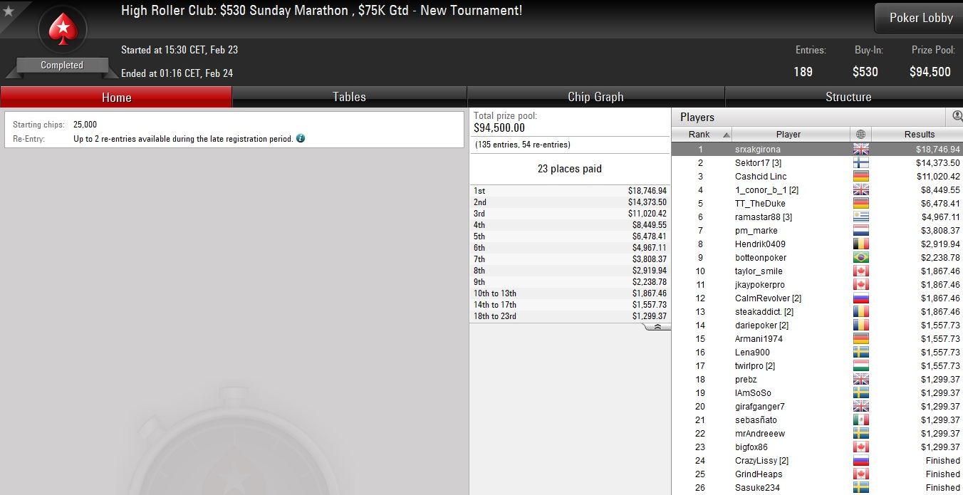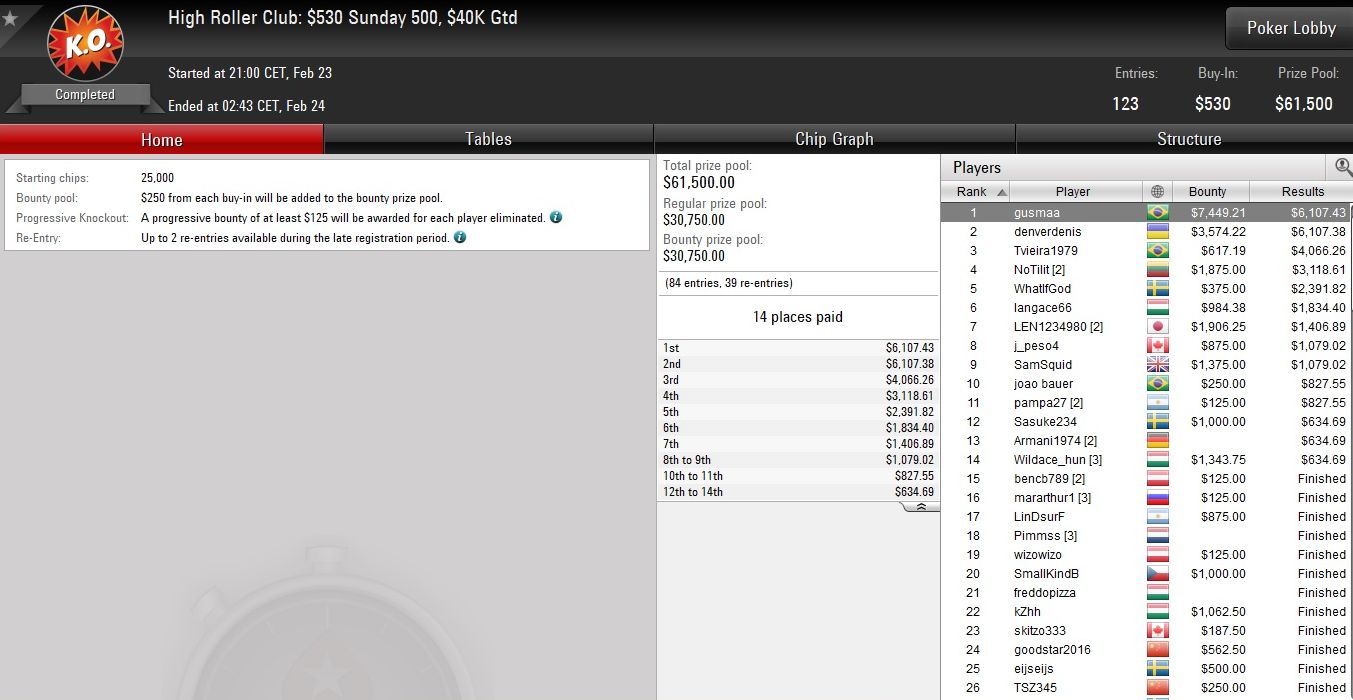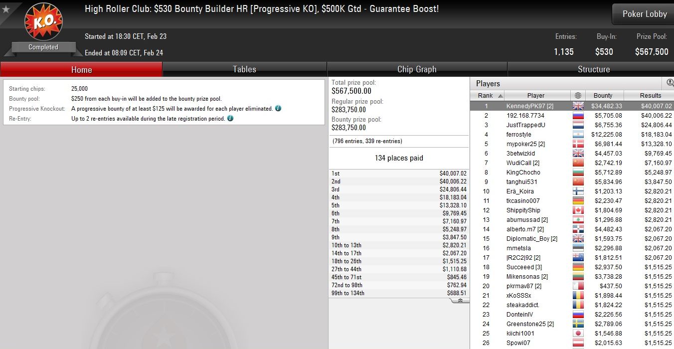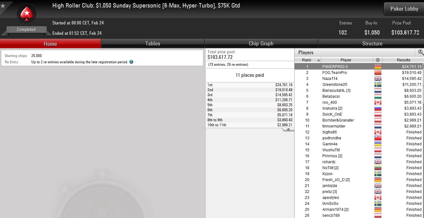 Die deutschsprachige Erfolgsgeschichte an diesem Sonntag ging aber noch weiter, denn beim $530 HR Supersonic landete mit „P0KERPR02.0“ der nächste Deutsche auf Platz 1.