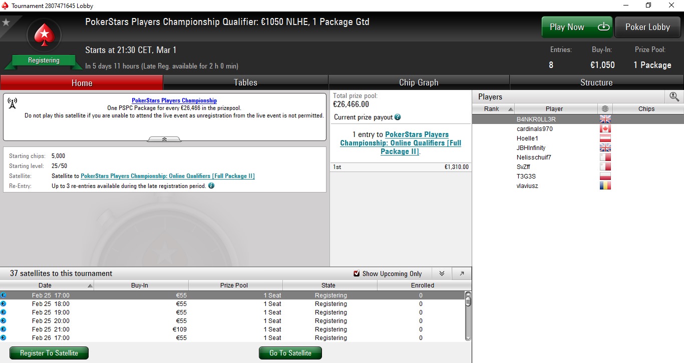 Das nächste Package wird bereits am 1. März vergeben. Schaut dazu einfach in der Turnierlobby auf PokerStars vorbei und sucht nach „Players Championship“.