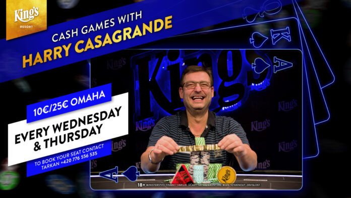 Am Mittwoch gibt es ab 19:30 Uhr live aus dem King’s Resort Rozvadov, das „Omaha Game mit Harry Casagrande“ im Livestream zu sehen. Gespielt wird Pot Limit Omaha mit den Blinds €10/€25 und einem Minimum Buy-In von €1.000. Die Action wird 30 Minuten zeitversetzt mit Hole Cards übertragen und auf Deutsch von Stefan Hachmeister kommentiert.