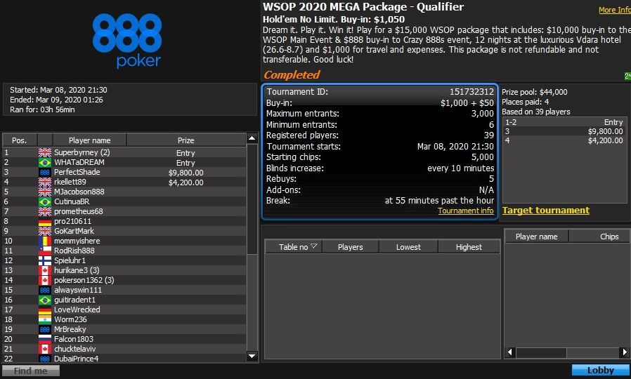 Schon seit einigen Wochen trägt 888poker jeden Sonntag einen $1.050 Qualifier für das WSOP Main Event 2020 aus.