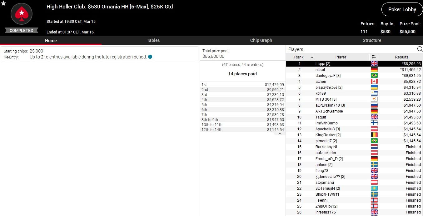 Ebenfalls Zweiter wurde „nilsef“ beim $530 Omania Highroller, war dabei aber nach Three-Way-Deal mit gut $11.000 der größte Gewinner.