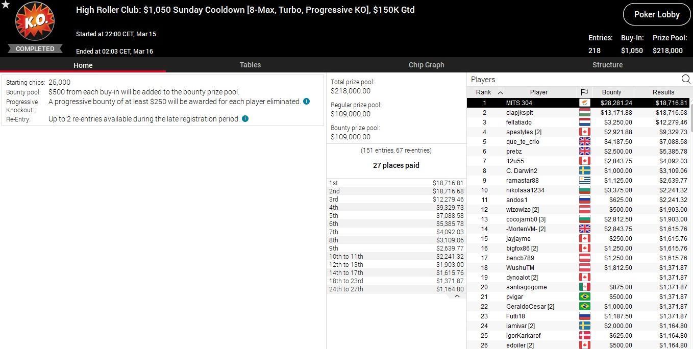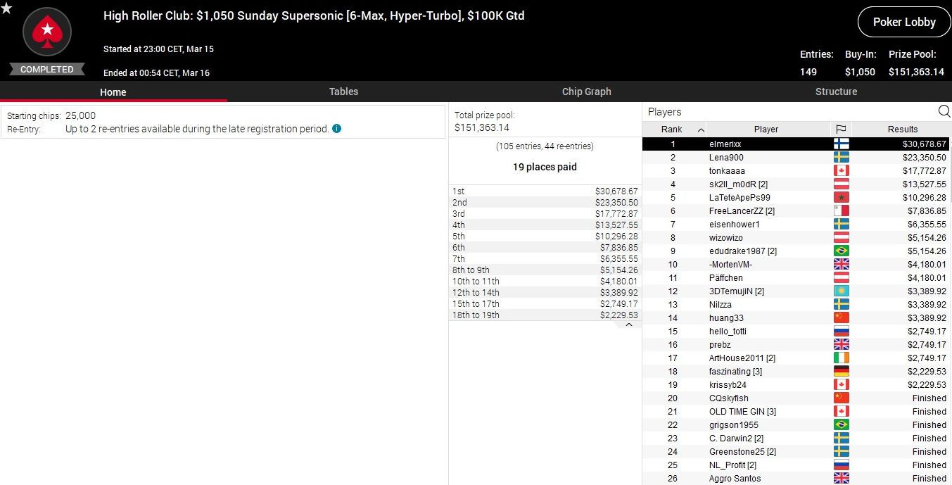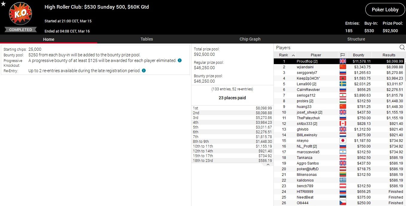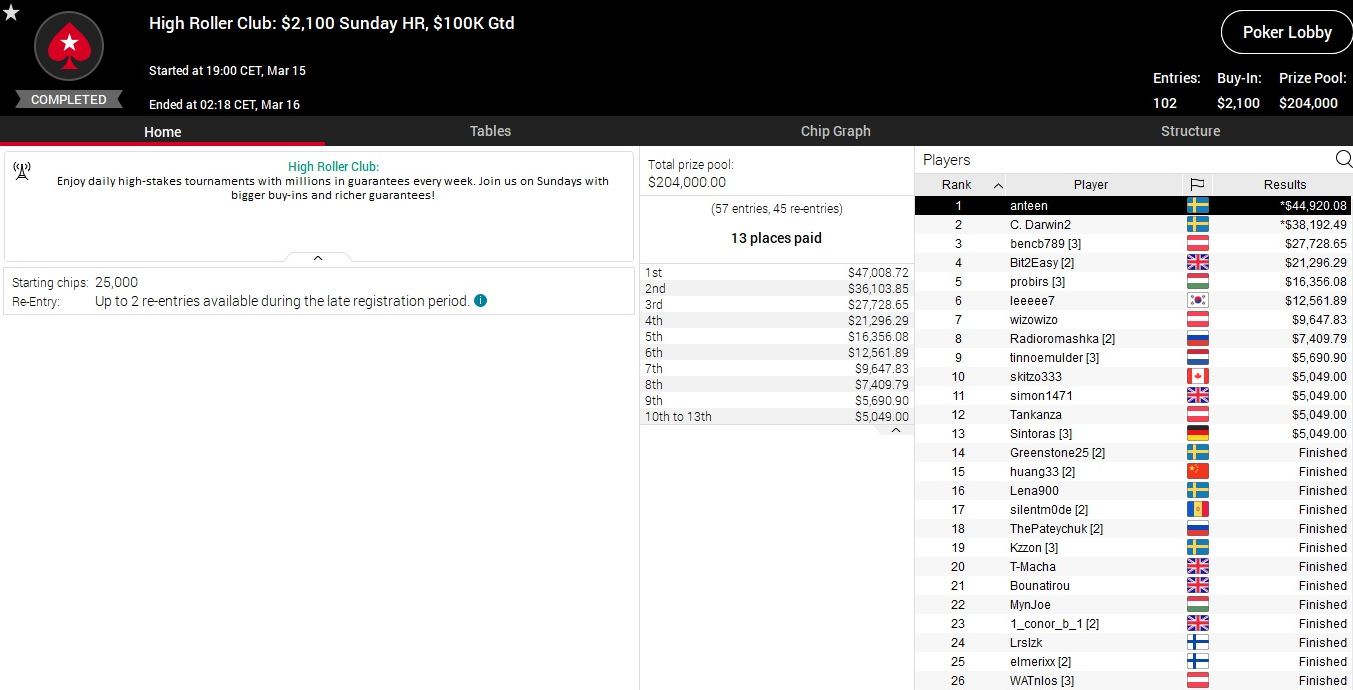 Außerdem landete Benjamin „bencb789“ Rolle beim Sunday Highroller auf Platz 3 und rundete die gute deutschsprachige Bilanz ab.