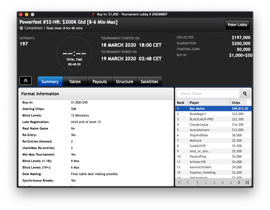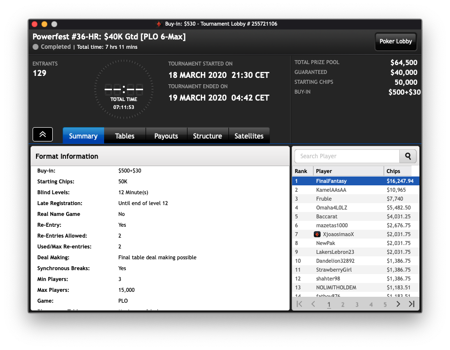 Bei partypoker ist derzeit das Powerfest im vollen Gange. Auf allen möglichen Buy-In-Stufen gibt es Turniere mit reichlich Action.