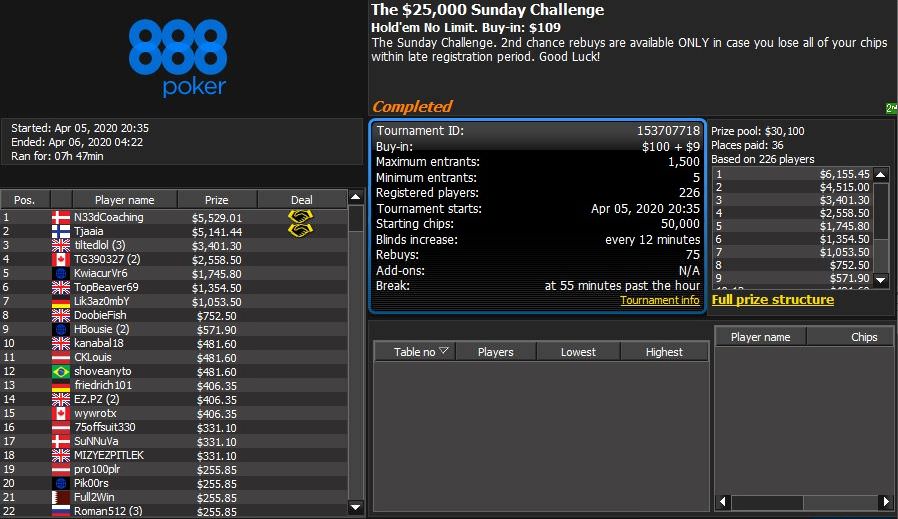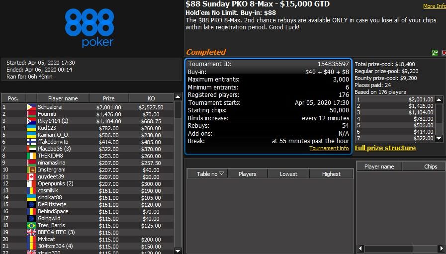 Außerdem standen gestern die klassischen Sonntagsturniere wie der Whale, die Sunday Challenge und das $88 PKO auf dem Programm. Die Ergebnisse findet ihr hier: