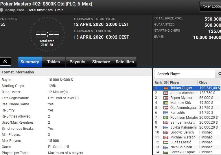 Einen deutschen Sieg gab es bei Event #2, einem $10.300 PLO-Turnier. Auch hier wurden 55 Entries verbucht, und am Ende konnte sich Tobias Ziegler gegen die starke Konkurrenz durchsetzen.