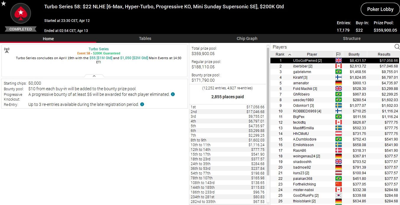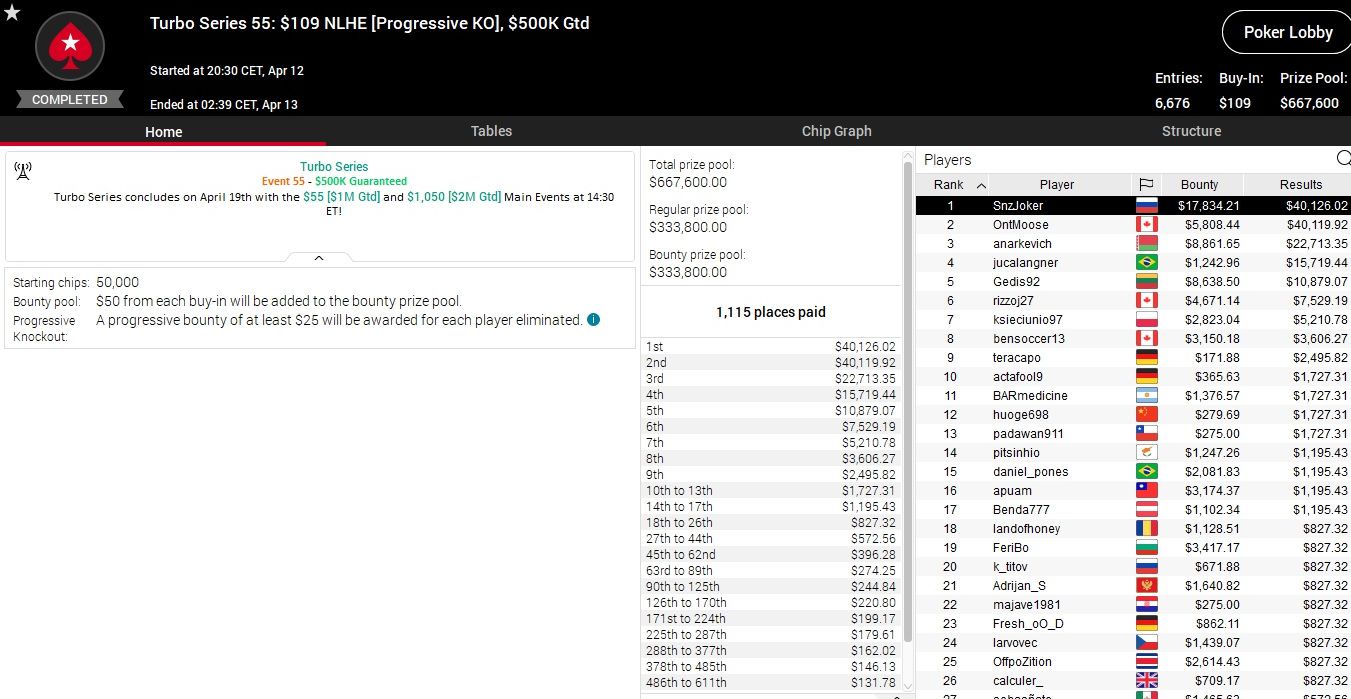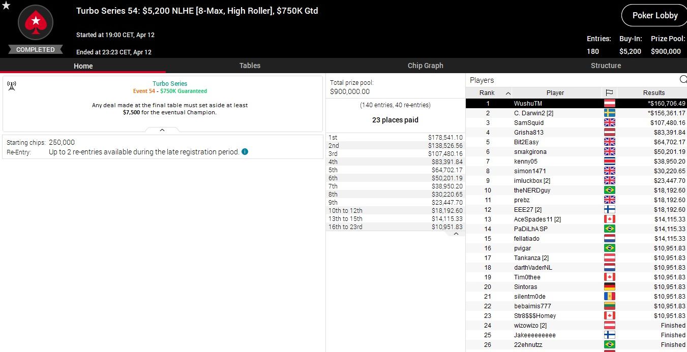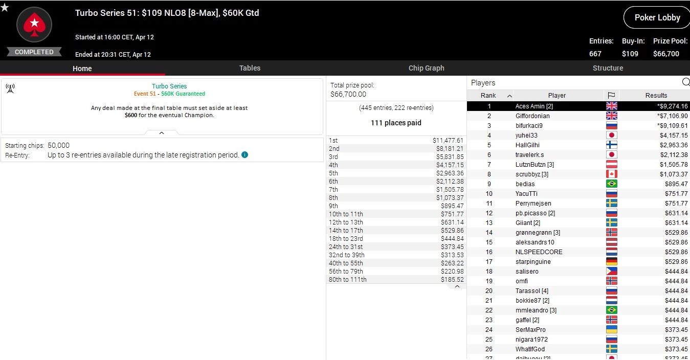 Heute stehen bei der Turbo Series sieben weitere Turniere an, die Anfangszeiten findet ihr in der Lobby von PokerStars.