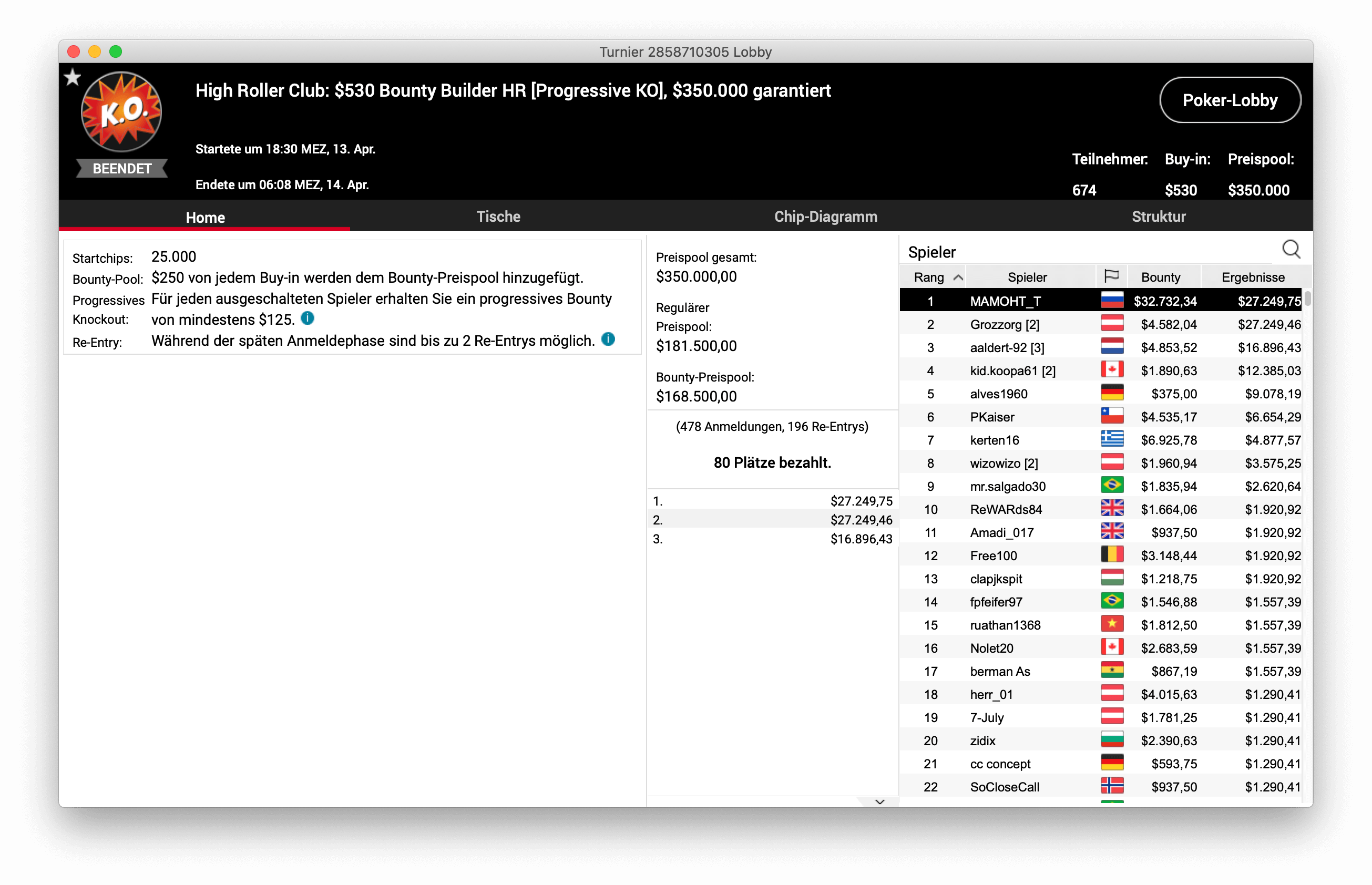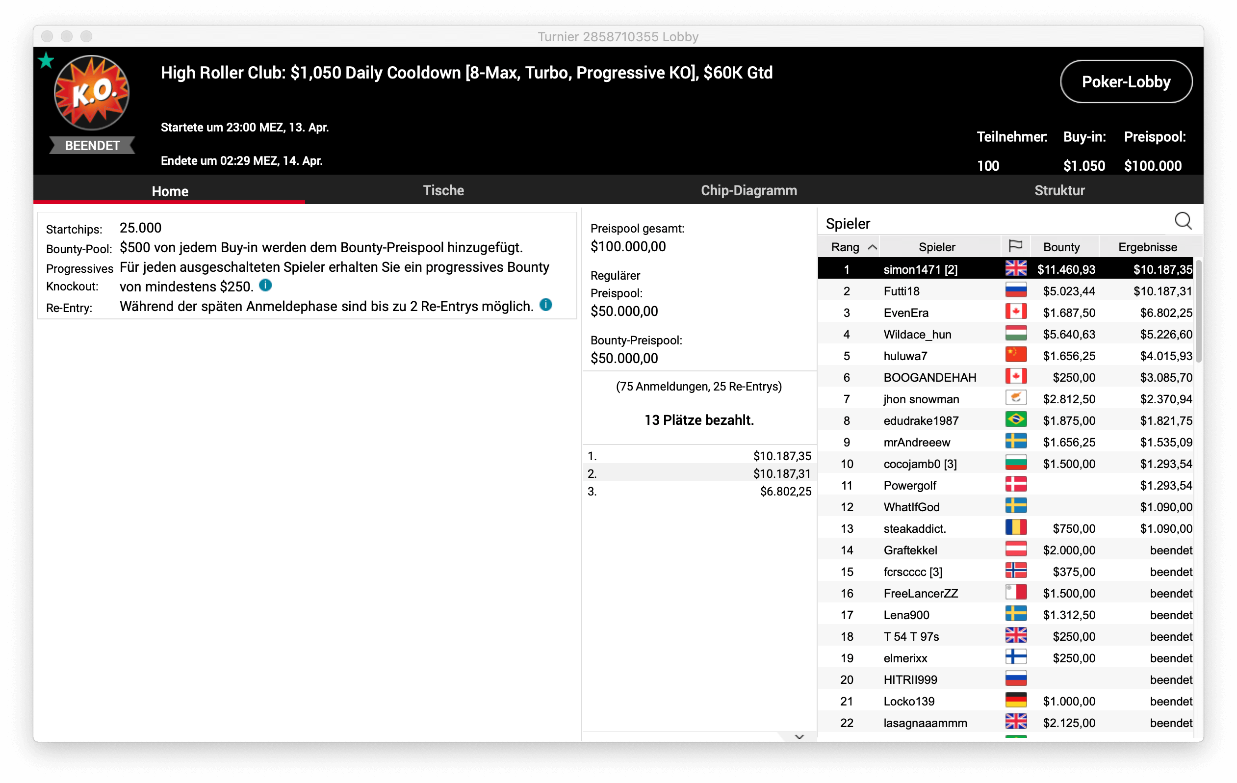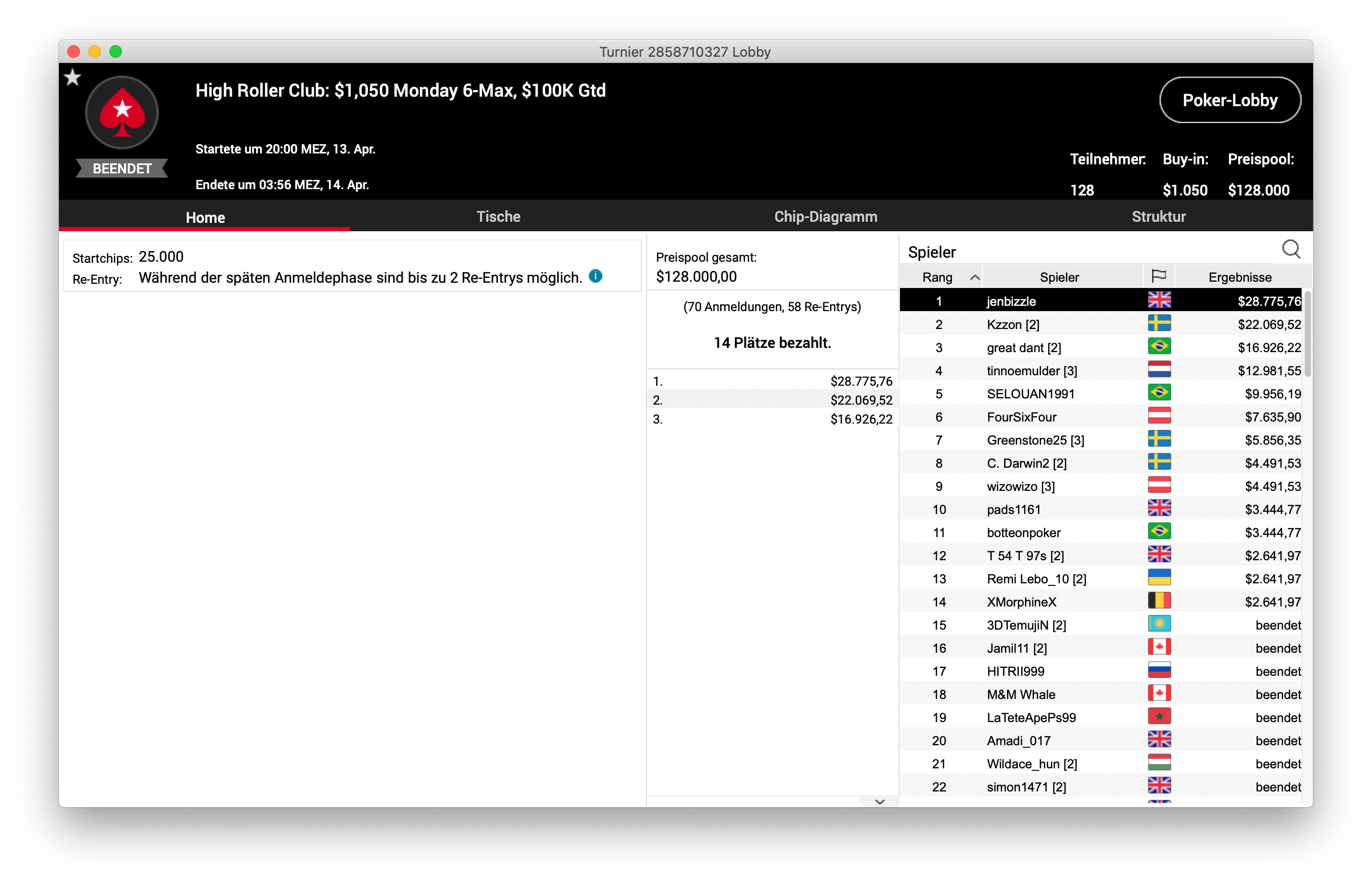 Weitere Ergebnisse des Highroller Clubs auf PokerStars: