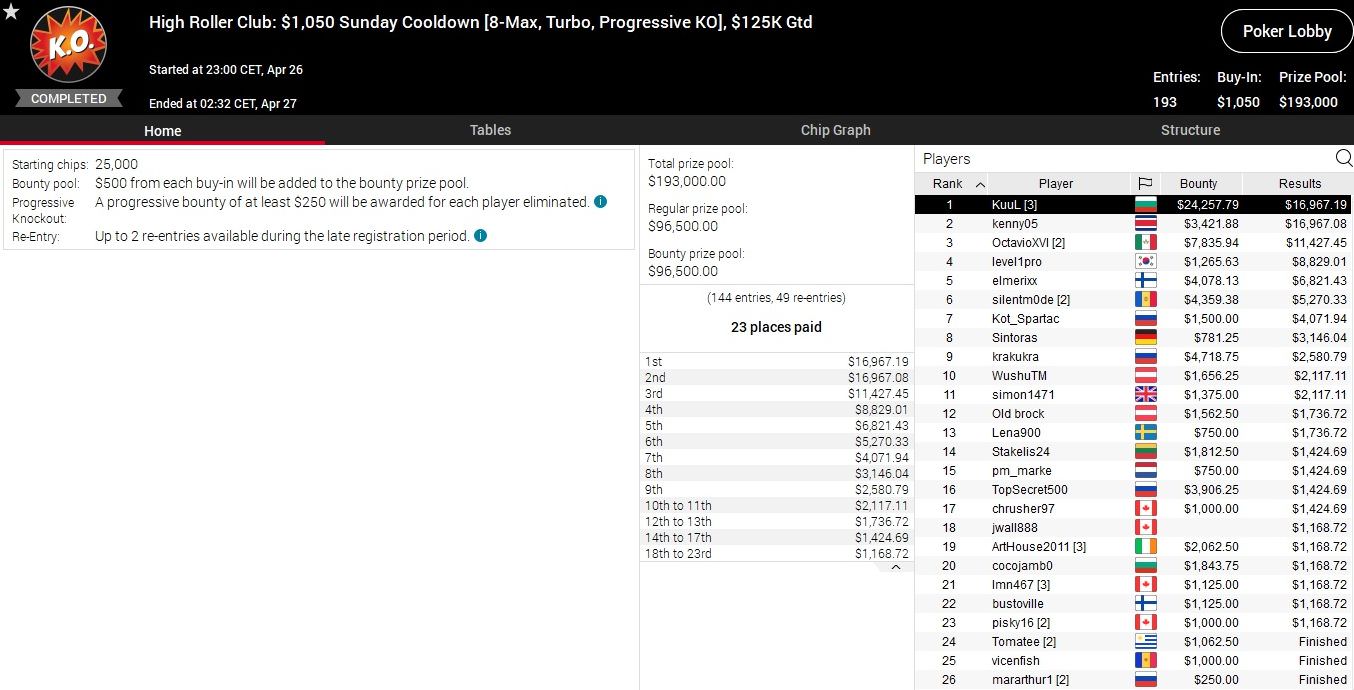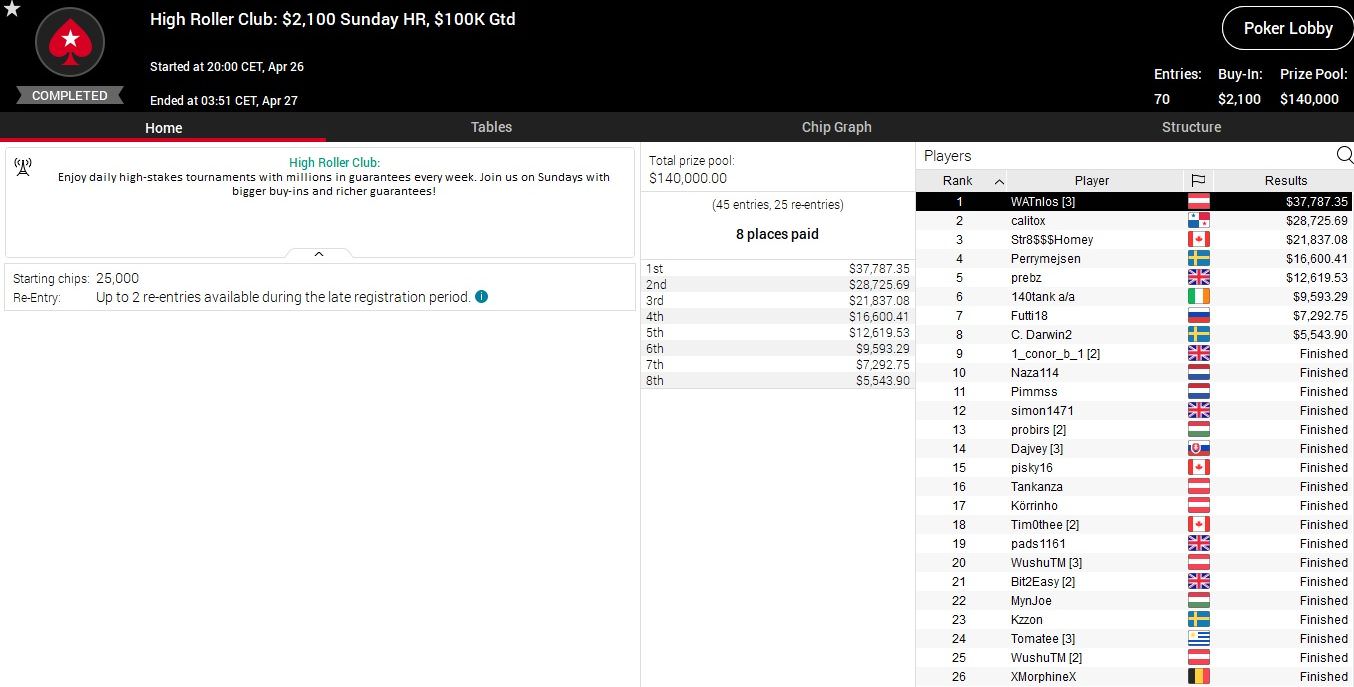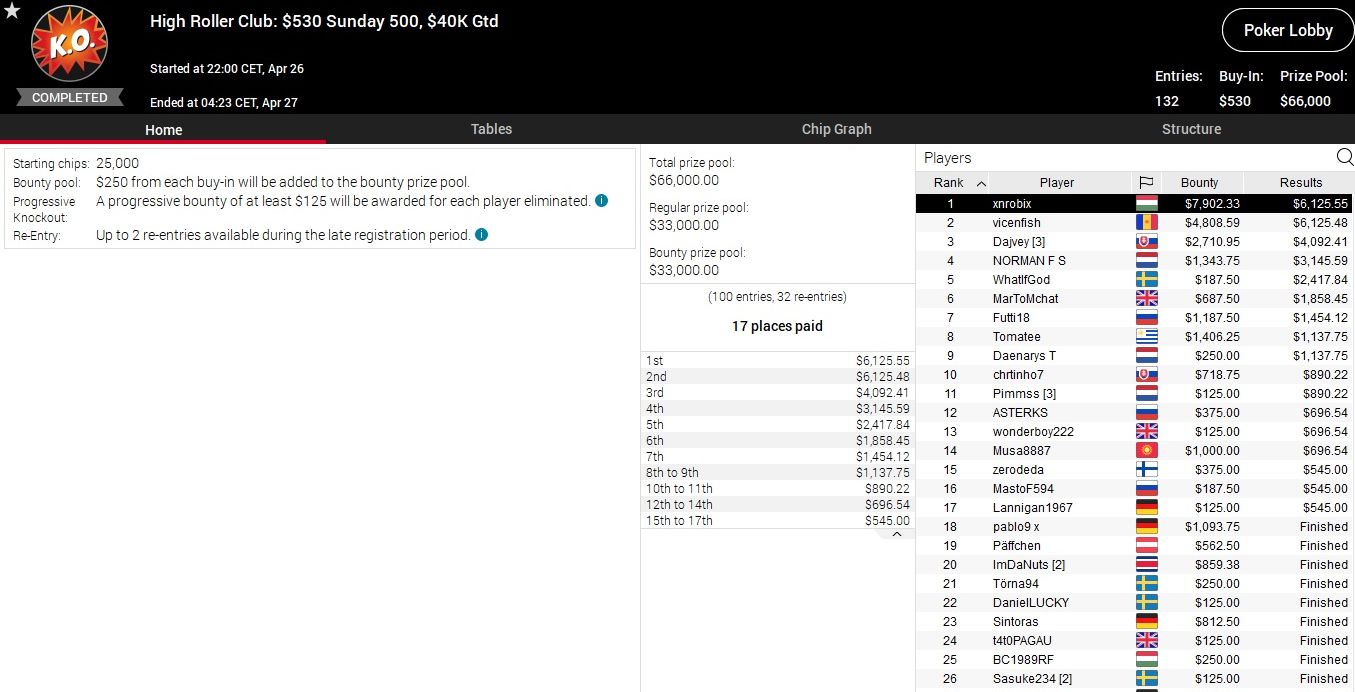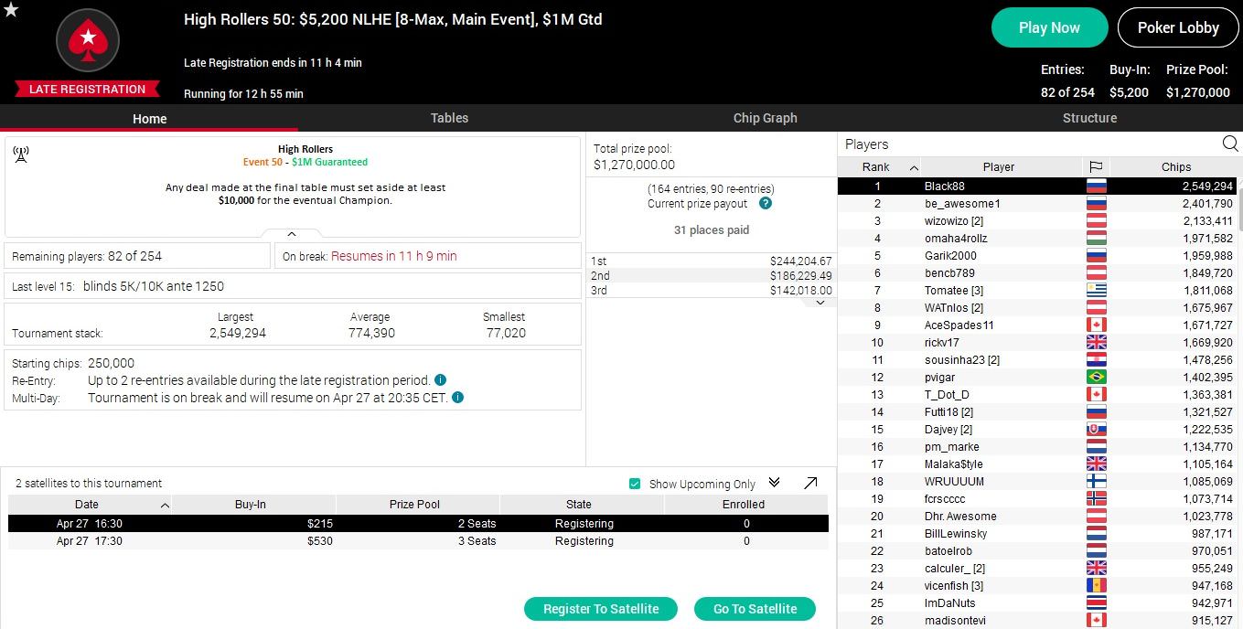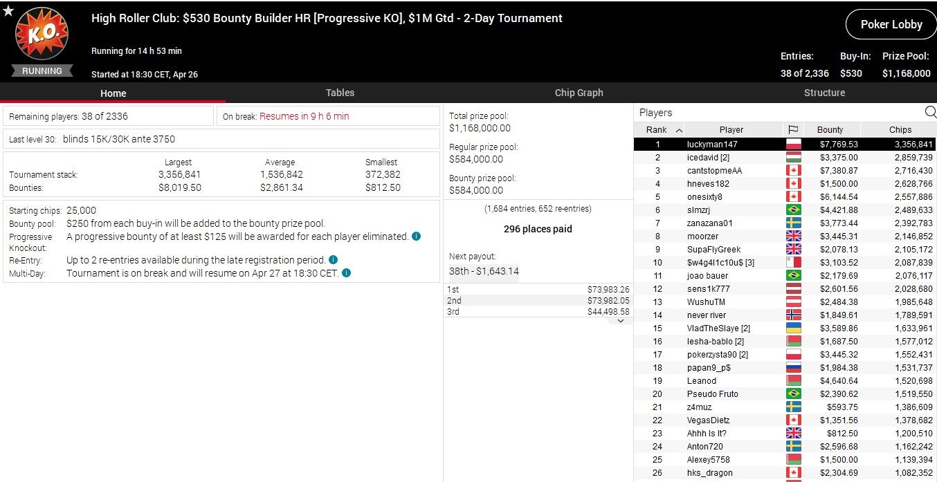 Noch nicht entschieden sind das $530 Bounty Builder sowie das Event 50 der High Roller Series mit einem Buy-In von $5.200. Vor allem bei letzterem Turnier stehen die deutschsprachigen Chancen ausgezeichnet.
