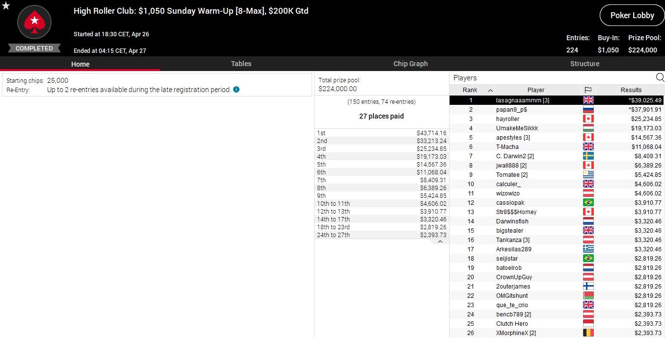 Nach einem Deal mit dem Zweitplatzierten „papan9_p$“ aus Russland bekam der Italiener über $39.000 gut geschrieben.