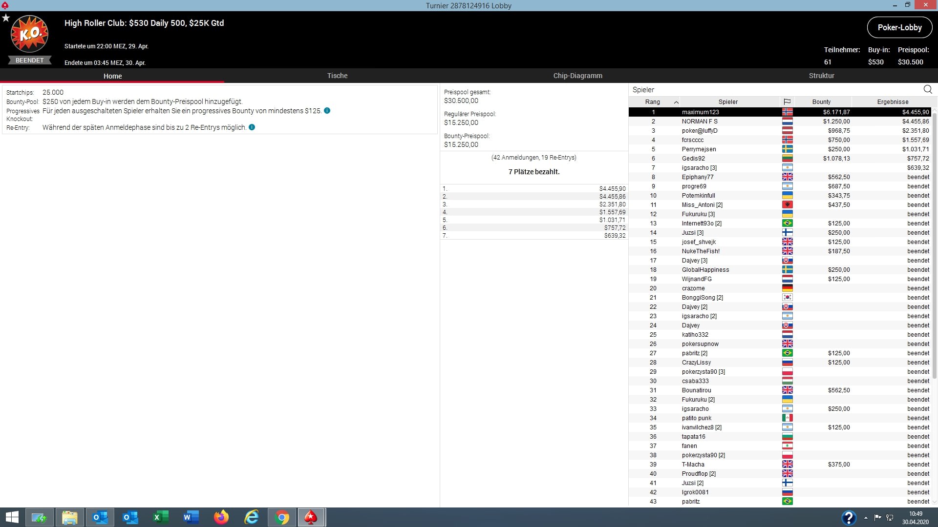 Der Österreicher Guntis „poker@luffyD“ Aleskins holte sich beim $530 Daily 500 den Platz 3 für $2.351 + $968. Den Sieg schnappte sich „maximum123“ aus Norwegen für $4.455 + $6.171.