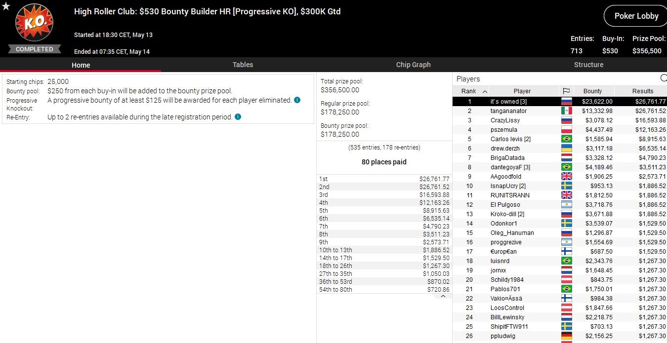 Die frühe Ausgabe sicherte sich der Russe „it`s owned“ und fuhr damit über $50.000 ein, während Alexander „schildy1984“ Debus als Zwanzigster noch gut $2.000 erhielt.