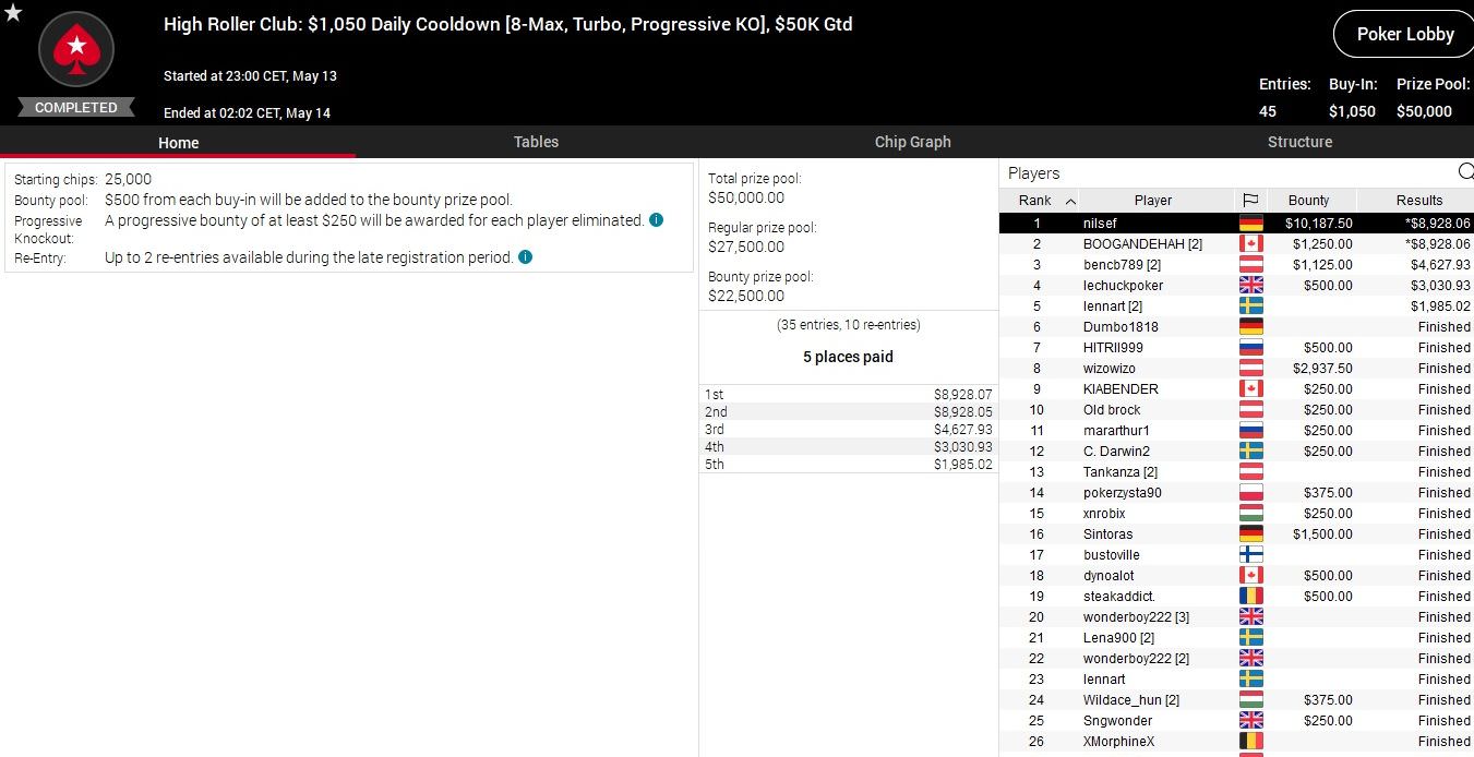 Er verwies „BOOGANDEHAH“ aus Kanada, Ben „bencb789“ Rolle und Igor „lechuckpoker“ Kurganov auf die Plätze und holte auch dank kräftiger Bounty-Ausbeute über $19.000 Preisgeld.