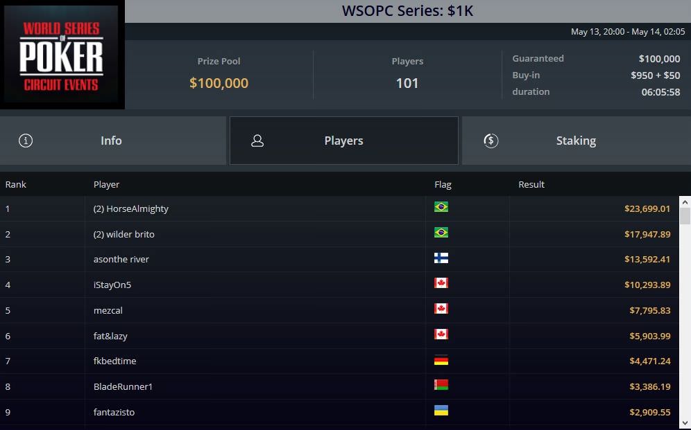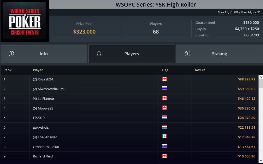 Einen Turniersieg feierte auch Kristen „Krissyb24“ Bicknell. Sie triumphierte beim ersten 5k-Highroller des Tages vor dem Russen „Alwayswithnuts“ und kassierte über $88.000 Preisgeld.