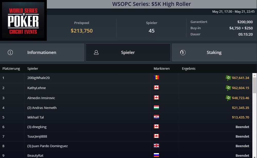 Bei den High Roller-Turnieren gingen die DACH-Spielerdagegen leer aus.