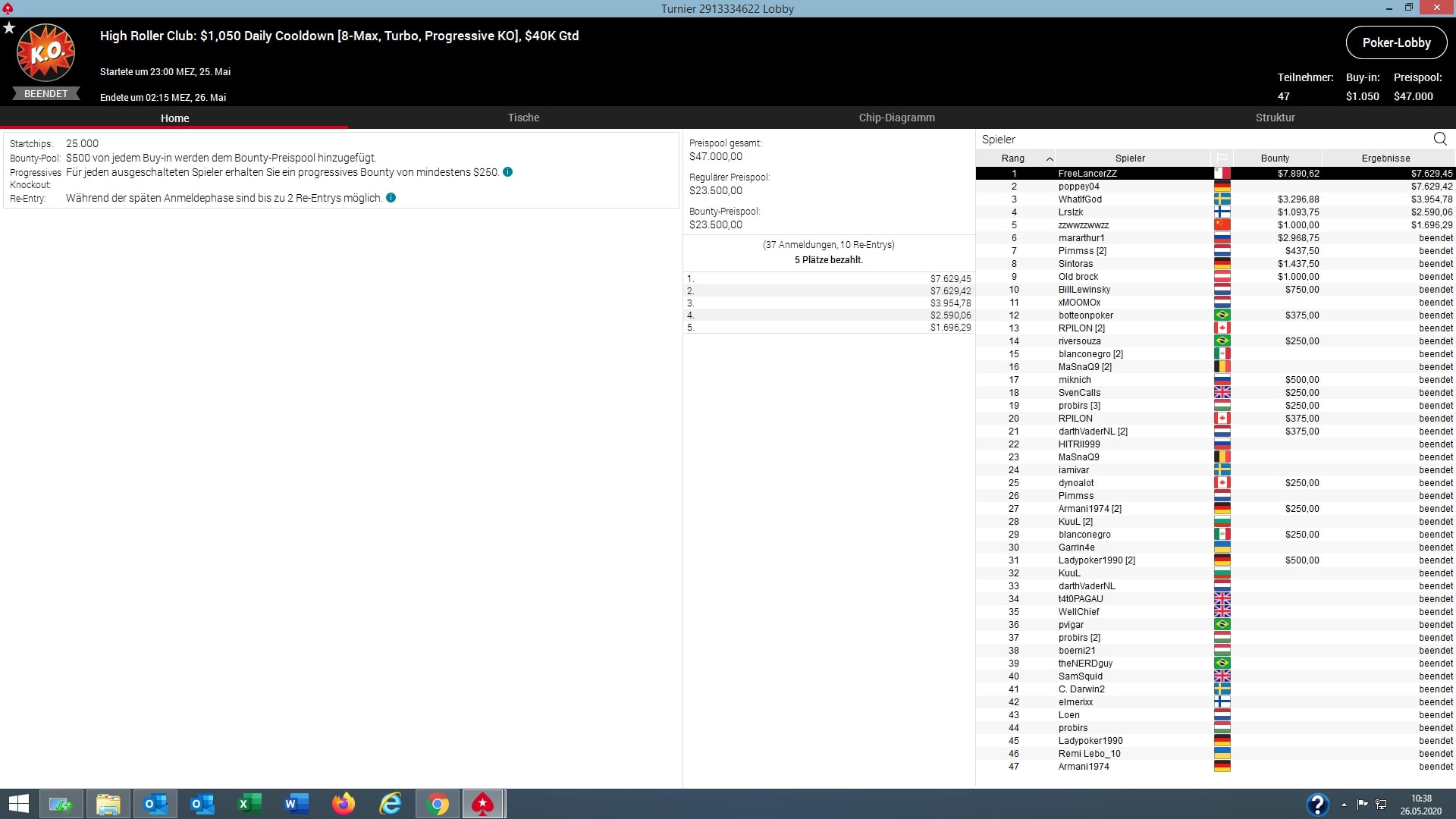 Die beste deutschsprachige Platzierung gab es für den Deutschen „poppey04“ beim $1.050 Daily Cooldown, wo er als Runner-Up $7.629 (keine Bounties) kassierte. Gewinnen konnte das Turnier Michel „FreeLancerZZ“ Datani aus Malta für $7.629 + $7.890 Bounties.