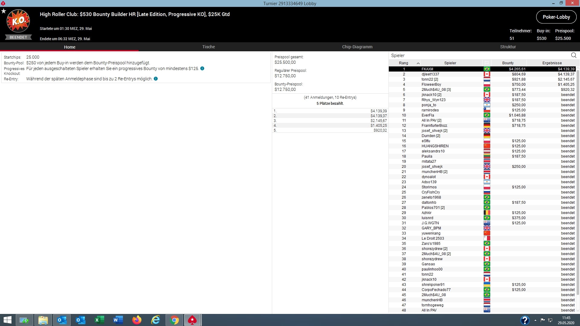 Dann konnte sich noch „FKAXM“ aus Brasilien den Sieg und $4.139 + $4.265 Bounties beim $530 Bounty Builder High Roller Late Edition sichern.