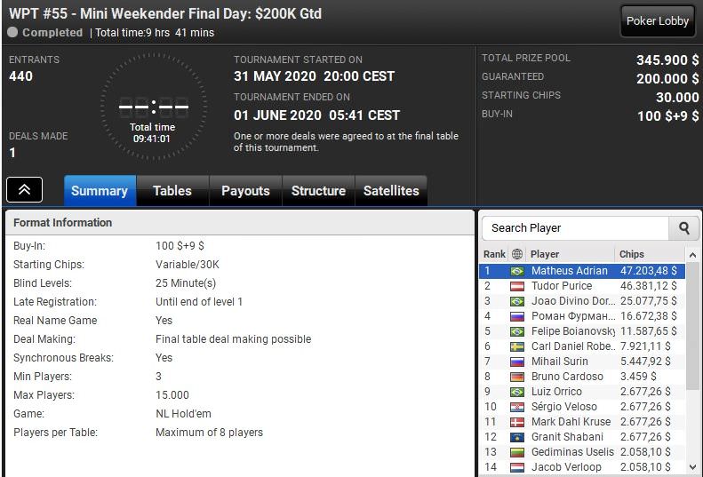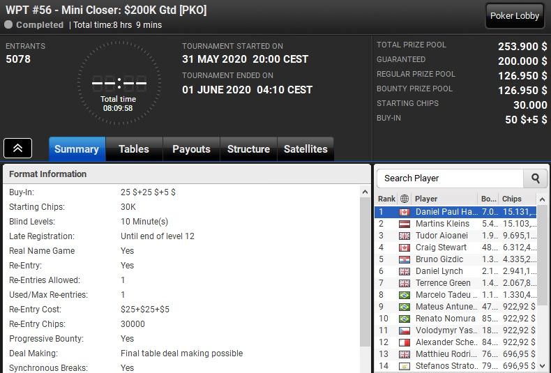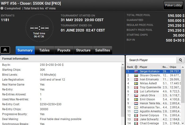 Insgesamt 56 Turniere in verschiedenen Kategorien wurden bei der WPT Online auf partypoker in den letzten Wochen absolviert, und gestern standen mit dem Closer und dem letzten Weekender die letzten Entscheidungen an.