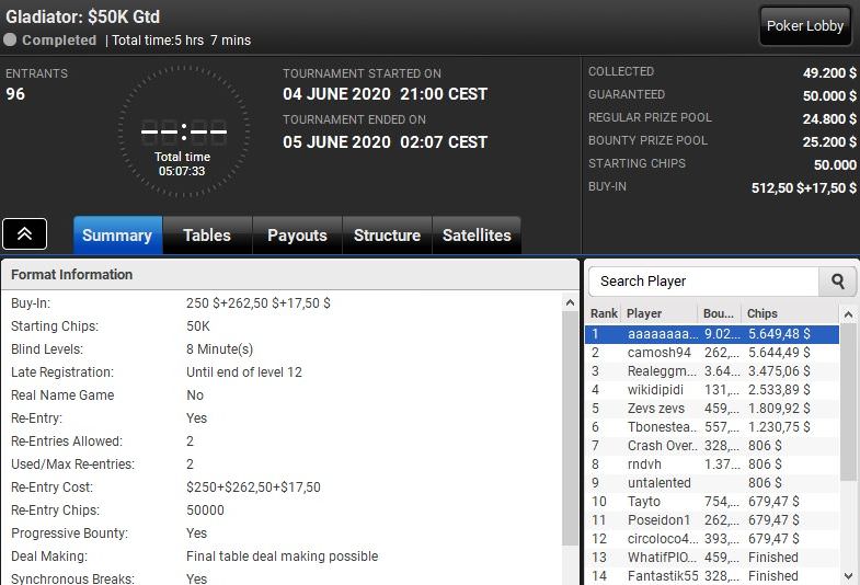 Damit war er aber nicht der größte Gewinner des Tages, denn beim $530 Gladiator räumte der Spieler mit dem einprägsamen Namen „aaaaaaaaaaaa“ als Sieger sogar über $14.000 ab.