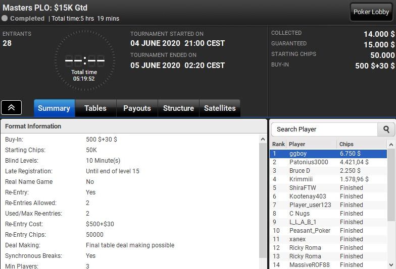 Weitere Tagessiege gingen beim PLO an „iminhydda“ und „GGBoy“, die sich jeweils über vierstellige Summen freuen konnten.