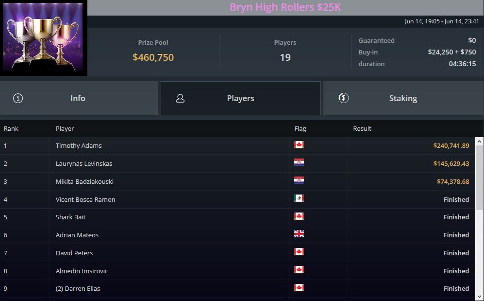 Außerdem wurden die Global MILLION$ und einige weitere Highroller-Turniere ausgetragen, bei denen die deutschsprachigen Spieler aber keine nennenswerte Rolle spielten.