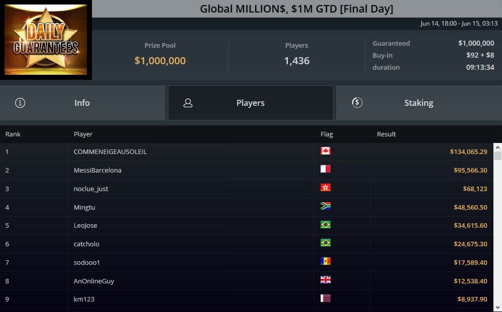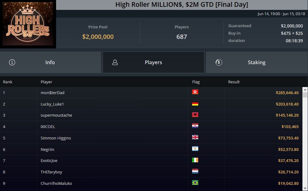 Aus deutschsprachiger Sicht ragten vor allem zwei Spieler an diesem langen Turniersonntag heraus. Bei den High Roller MILLION$ mit einer Garantie von $2 Millionen gab es ein Overlay, über das sich „Lucky_Luke1“ aus Deutschland doppelt freuen konnte. Als Zweiter hinter dem Hongkong-Chinesen „mon$terdad“ kassierte er über $203.000 Preisgeld und war damit einer der ganz großen Gewinner des Wochenendes.