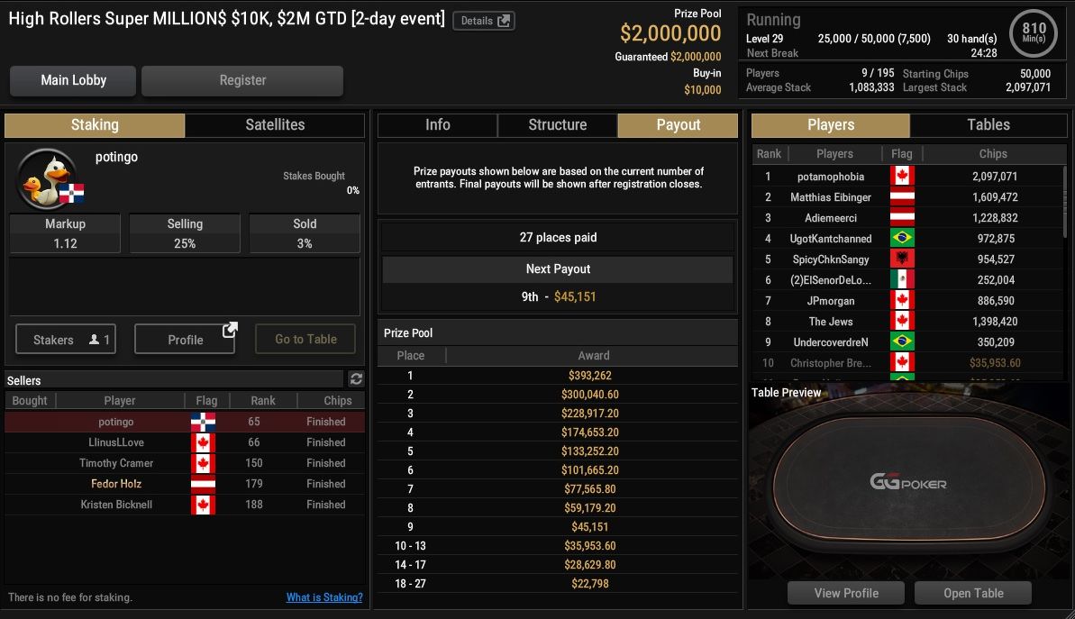 Noch nicht entschieden sind die GGPoker Super MILLION$, wo 195 Spieler das Buy-In von $10.000 zahlten und damit ebenfalls in den Genuss eines Overlays kamen.