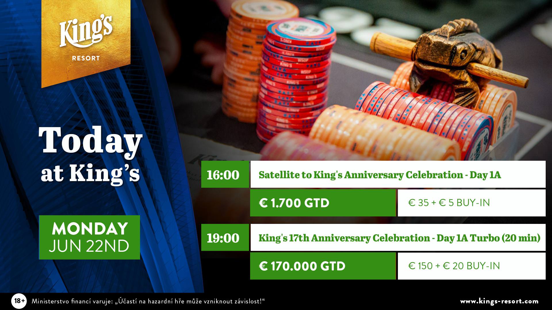 Heute starten im King’s die Feierlichkeiten zum 17. Geburtstag des Casinos. Das King’s Anniversary Celebration beginnt um 16 Uhr mit einem Satellite, der erste Starttag dieses €150+€20-Turniers folgt dann um 19 Uhr!