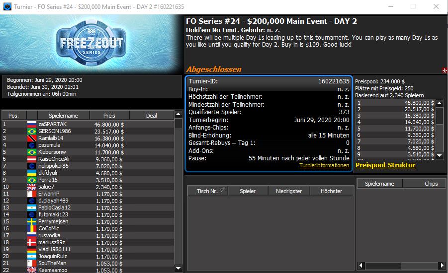 Den Sieg samt $46.800 Prämie schnappte sich der Russe zaSPARTAK vor GERSON1986, der als Runner-up $23.517 ausbezahlt bekam.