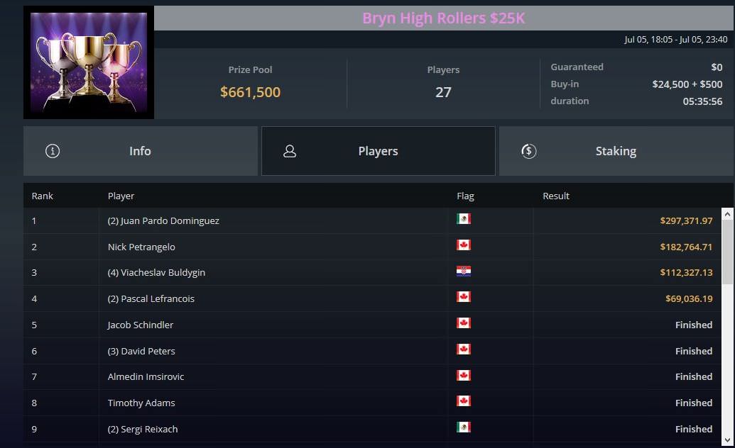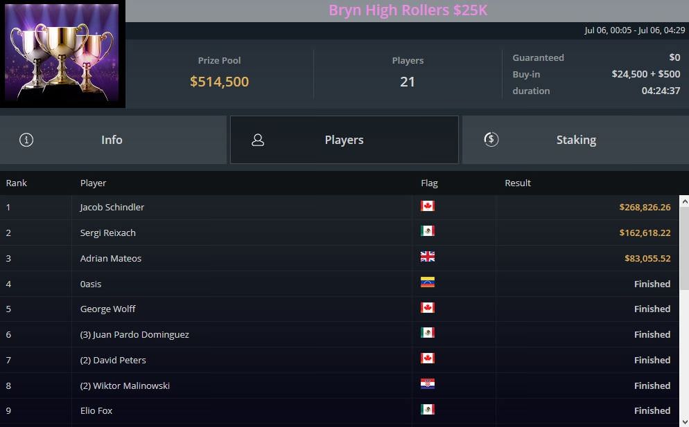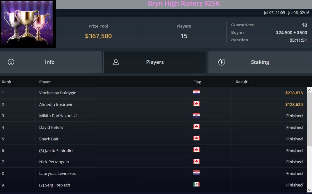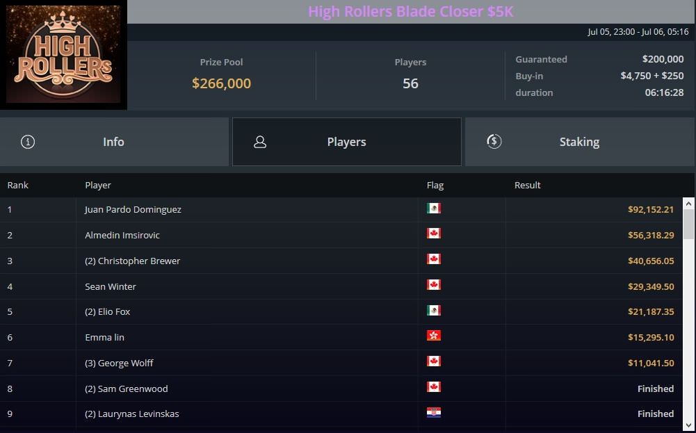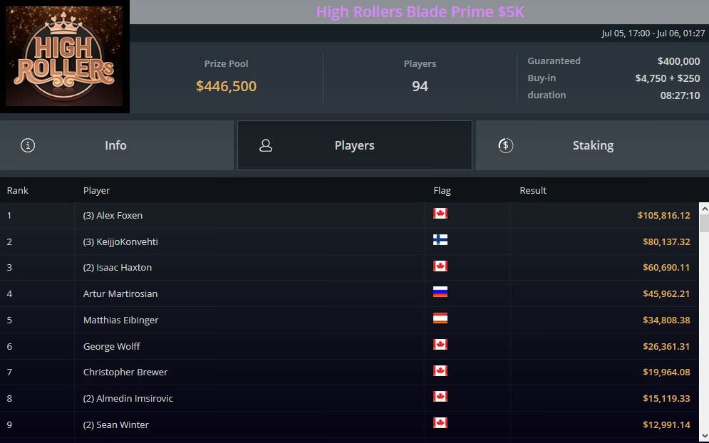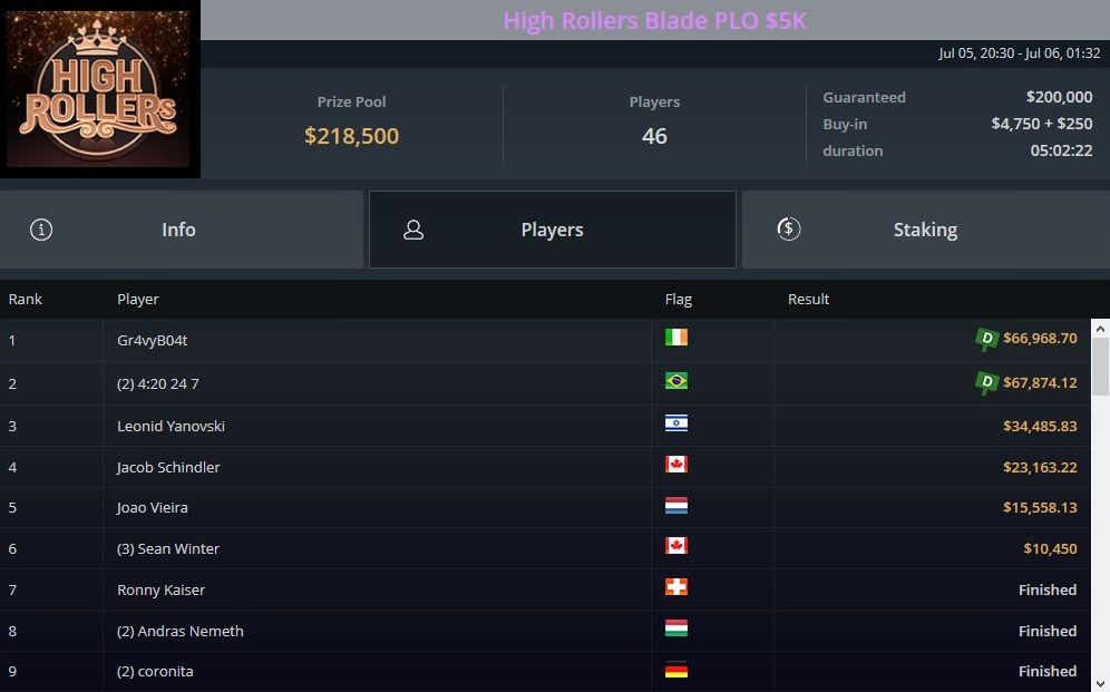 Aus deutschsprachiger Sicht gab es gestern zwei Spitzenergebnisse. Pascal Hartmann wurde beim $5k Opener Dritter und kassierte knapp $40.000. Außerdem gelang Matthias Eibinger beim High Rollers $5k Blade Prime ein guter fünfter Platz, der ihm rund $34.000 Preisgeld einbrachte.