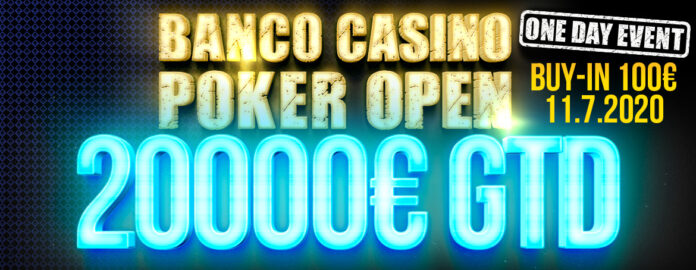Am Samstag, dem 11. Juli, findet um 18 Uhr dann die Banco Casino Poker Open (Re-Entry) mit €100 Buy-in und einem garantierten Preispool in Höhe von €20.000 statt. Die Spieler bekommen 30.000 Chips zum Turnierstart, die Levels dauern ebenfalls 25 Minuten. Auch hier gibt es für €5 ein Special Add-on, das 5.000 zusätzliche Chips bringt.