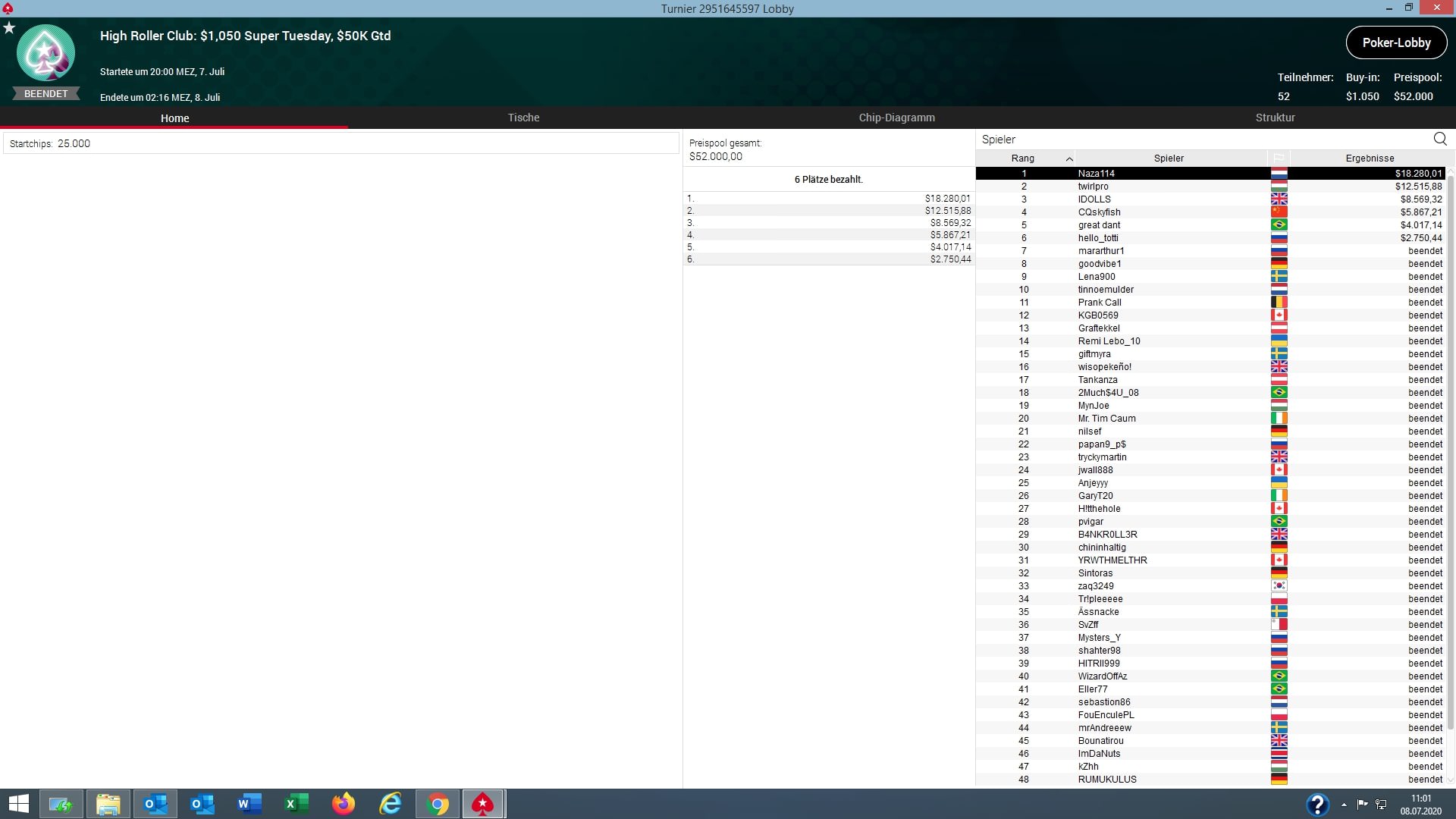 Da gewinnt man ein 1000ter Turnier und bekommt 280 $, geile Sache 😉