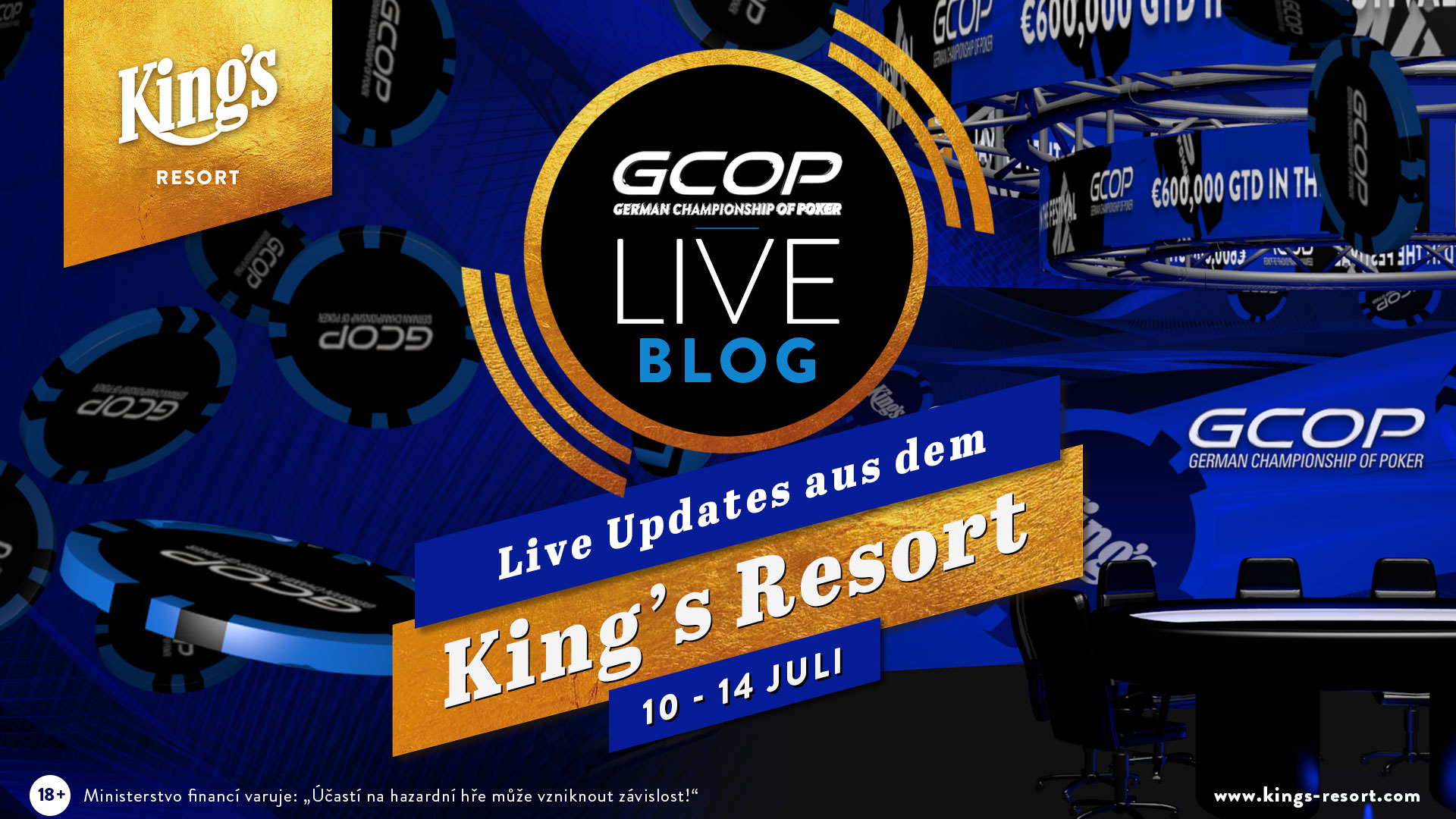 Das €1.000+€100 German Championship of Poker Main Event im King’s Resort Rozvadov ist was ganz besonderes. Nicht nur das es Deepstack-Poker vom aller Feinsten bietet, nein es werden auch noch satte €300.000 (inklusive drei €10.350 WSOP Europe Main Event Tickets Tag 1a) garantiert.