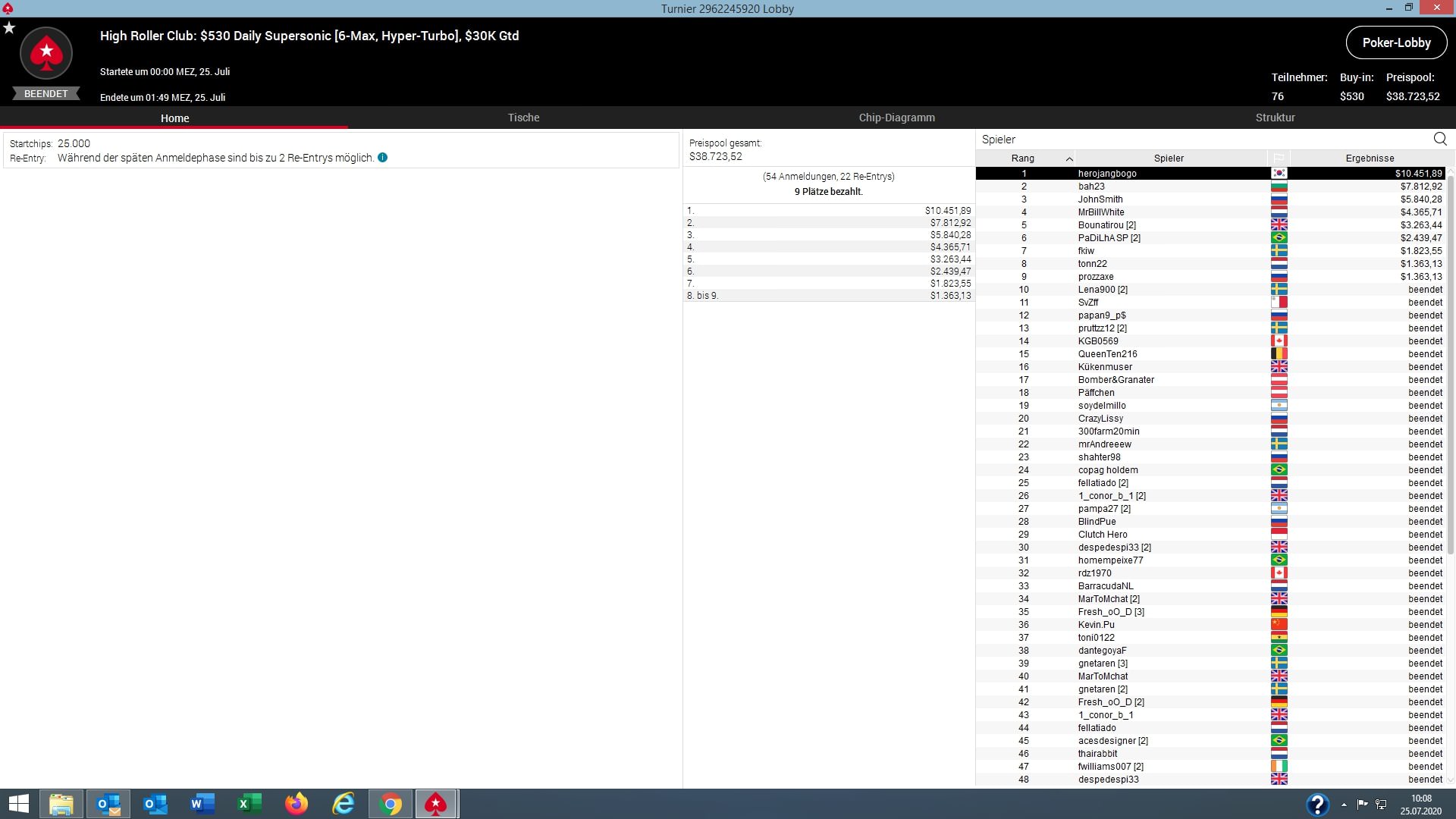 Außerdem gewann noch „herojangbogo“ aus Südkorea das $530 Daily Supersonic für $10.451. Dominik „Bounatirou“ Nitsche (GER/GBR) holte sich hier Platz 5 und $3.263.