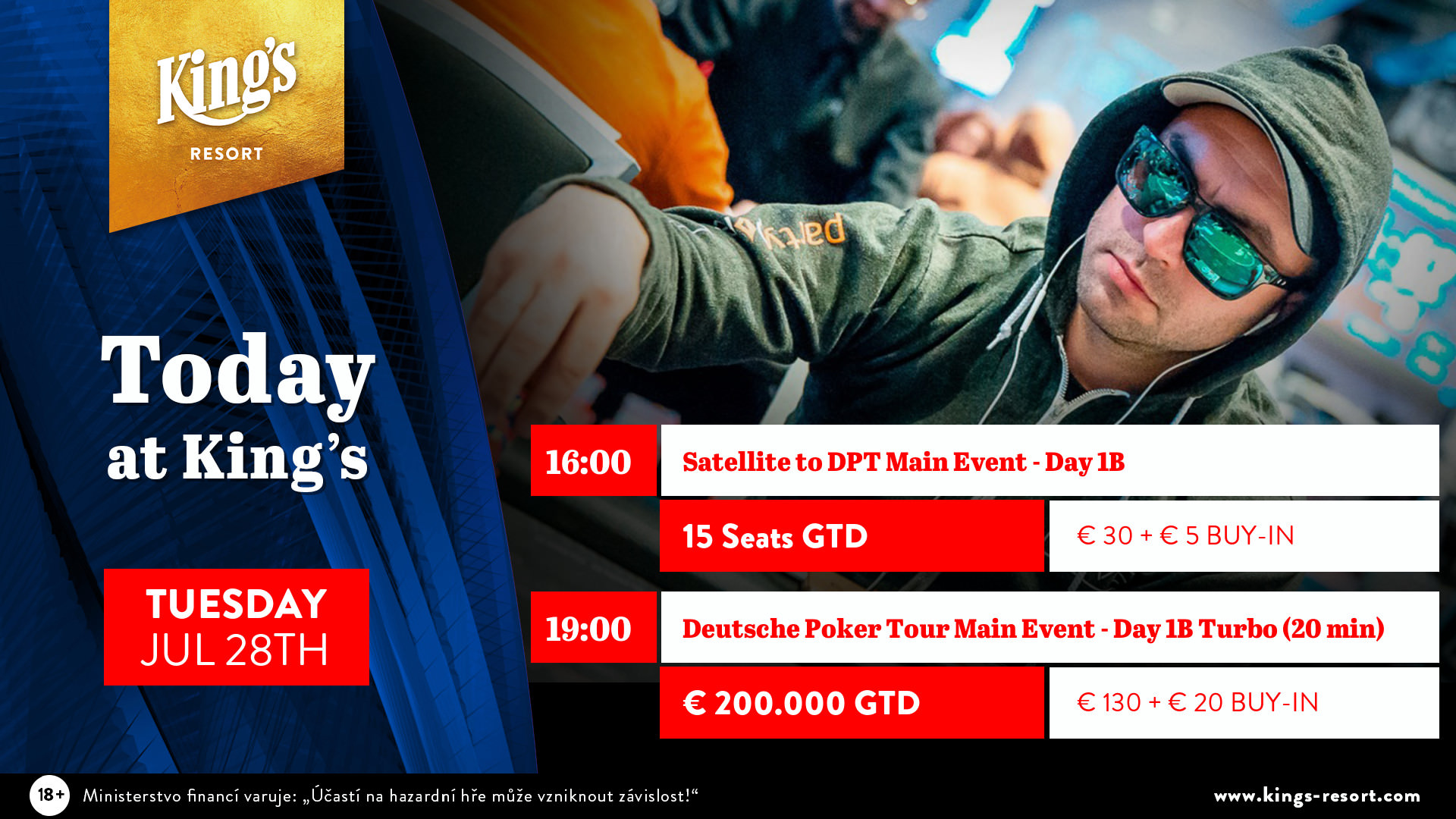 Heute gibt es im King’s den Startflight 1B Turbo mit 20min-Levels um 19:00 Uhr. Wer günstiger ins Turnier kommen will, kann sich um 16:00 Uhr an einem €30+5 Satellite versuchen, bei dem es 15 Seats garantiert zu gewinnen gibt. Ansonsten gibt es wie immer rund um die Uhr laufend Cash Games ab €1/€3 NLH und €2/€2 PLO.