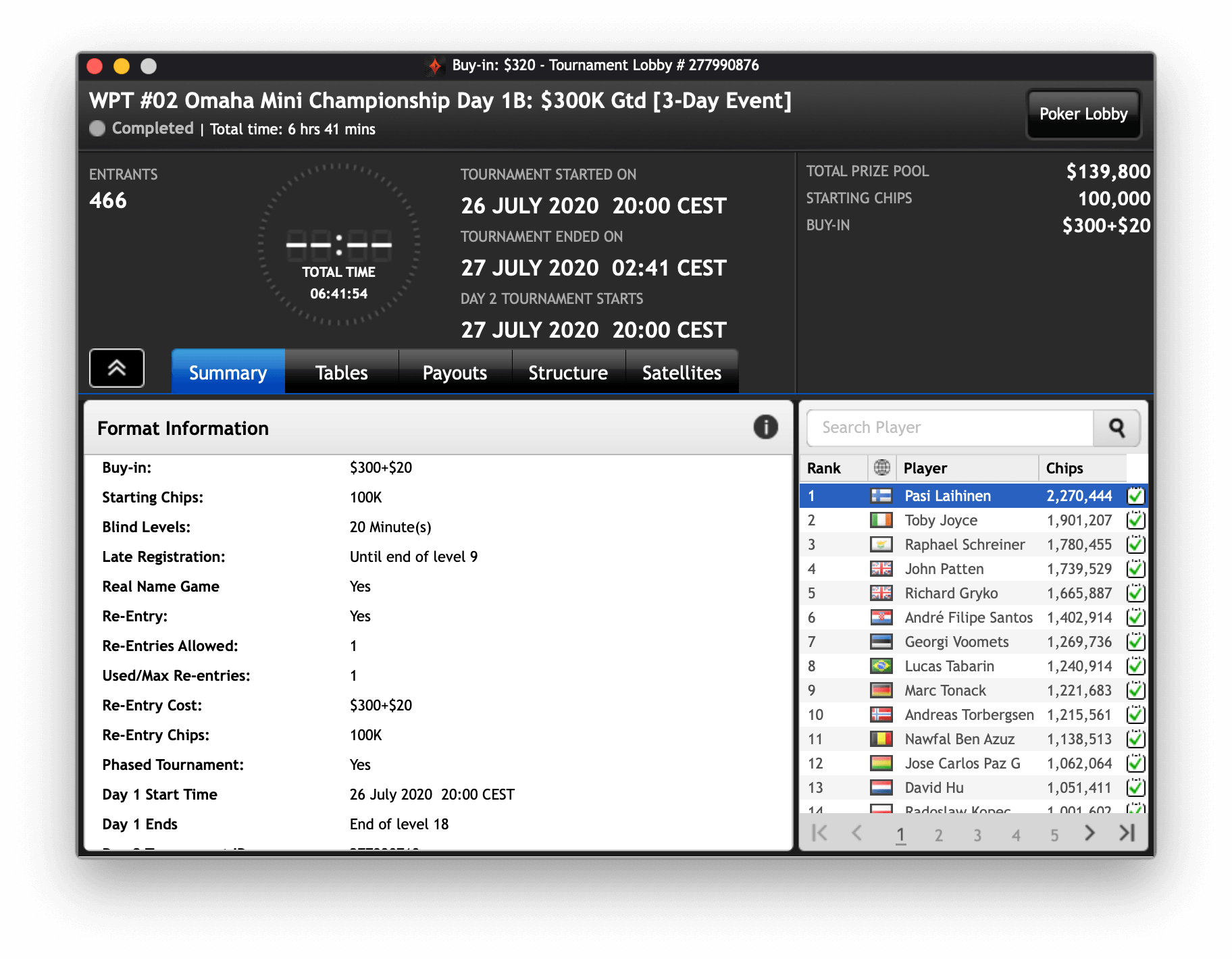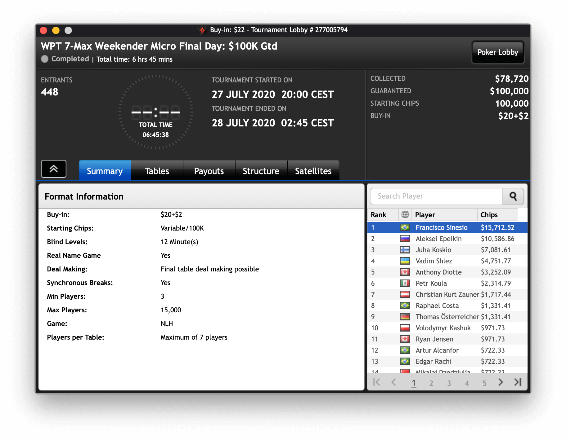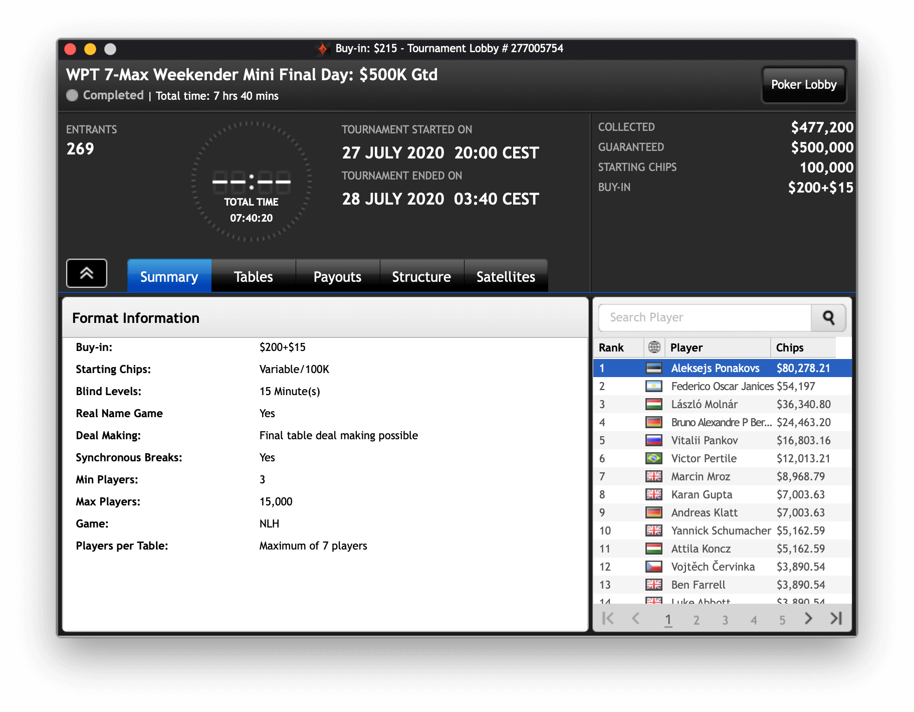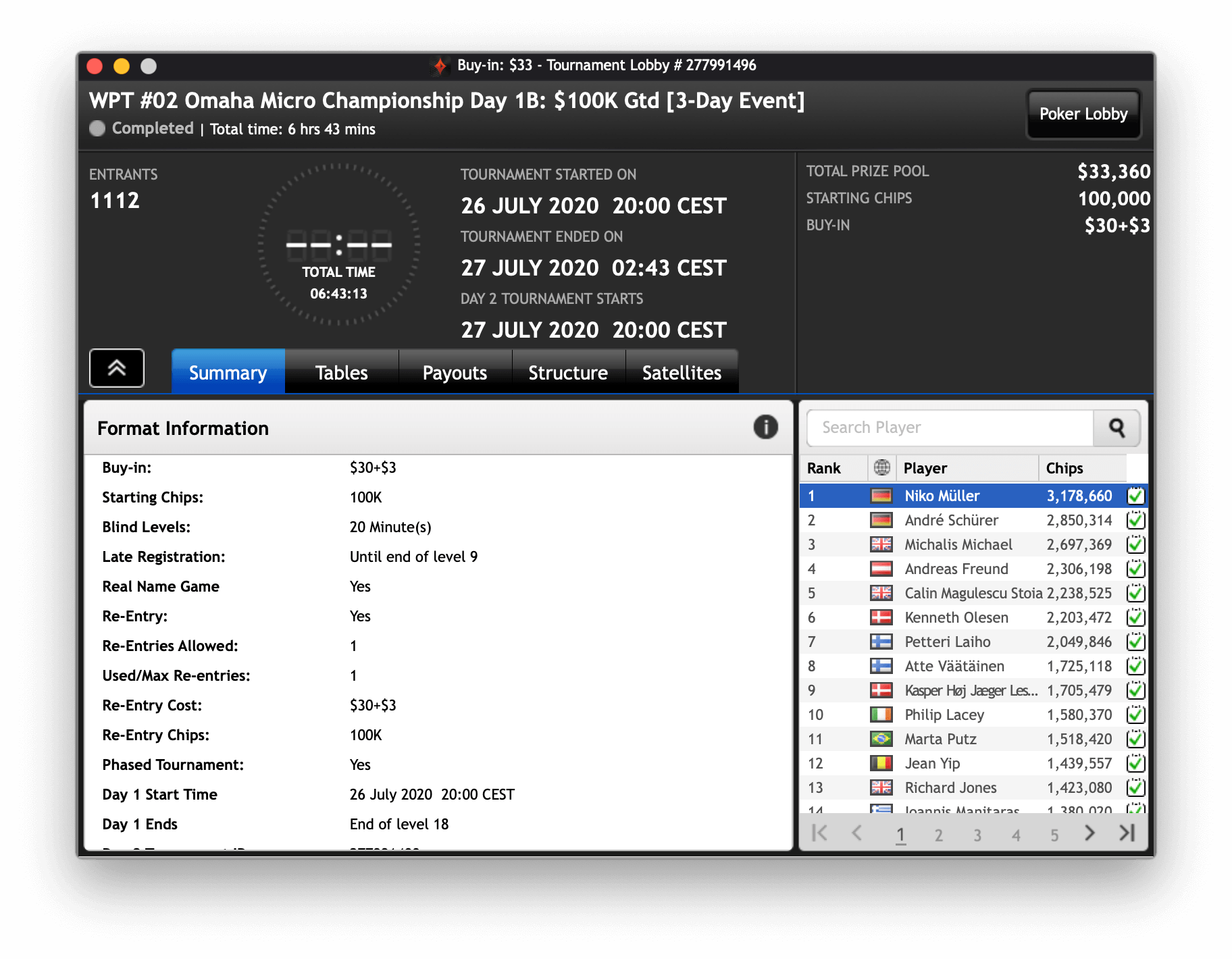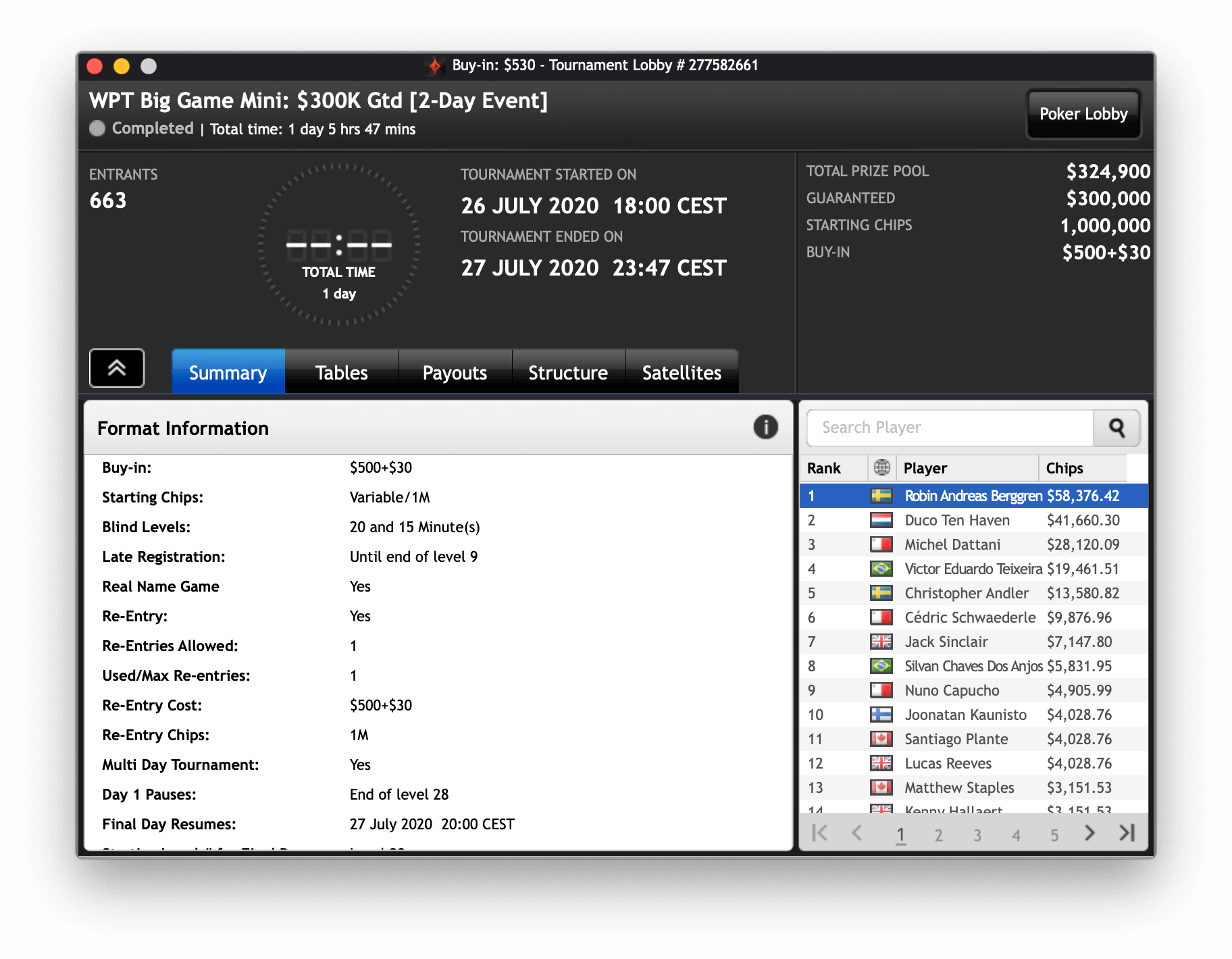 Koop konnte sich gegen ein Staraufgebot im High Roller Event der WPT durchsetzen. Das Turnier kostete $10.300 Buy-In und mit 97 Entries ging es am Ende um die Millionen Dollar garantiertes Preisgeld. Gegen den US-Amerikaner Scott Margereson setze sich Niko Koop am Ende durch und geht mit einem satten Preisgeld von $253.250 aus dem Turnier.