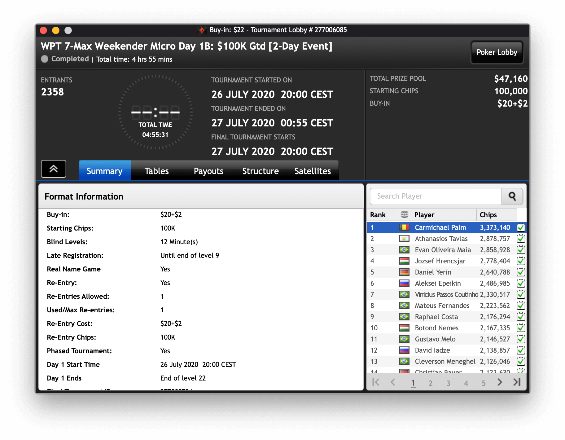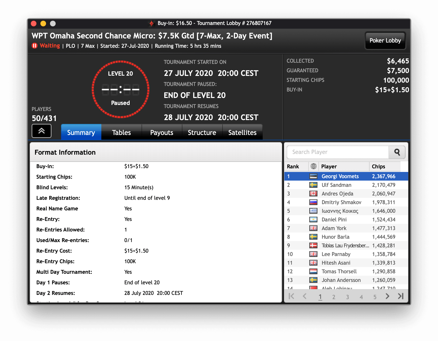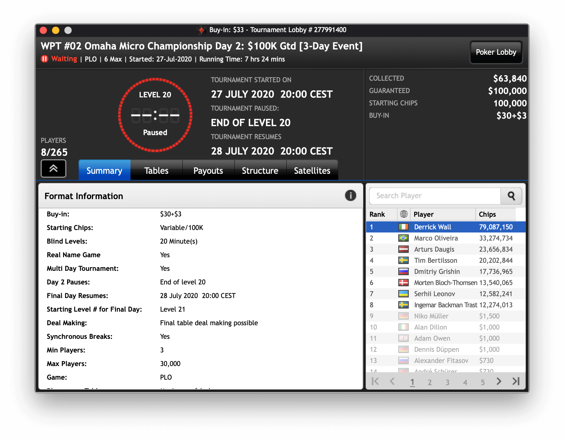 Die aktuellen Chipcounts bei der WPT auf partypoker: