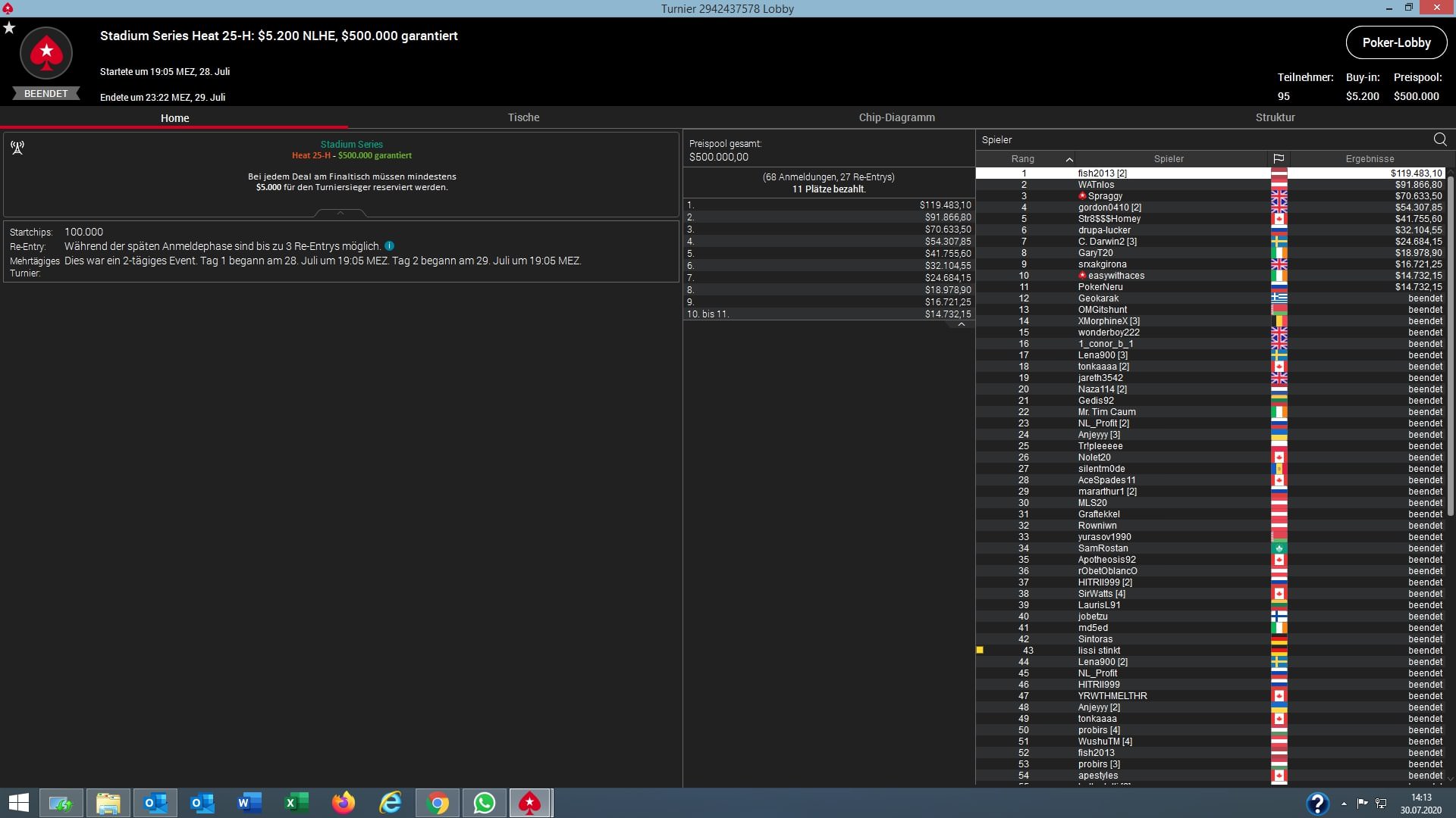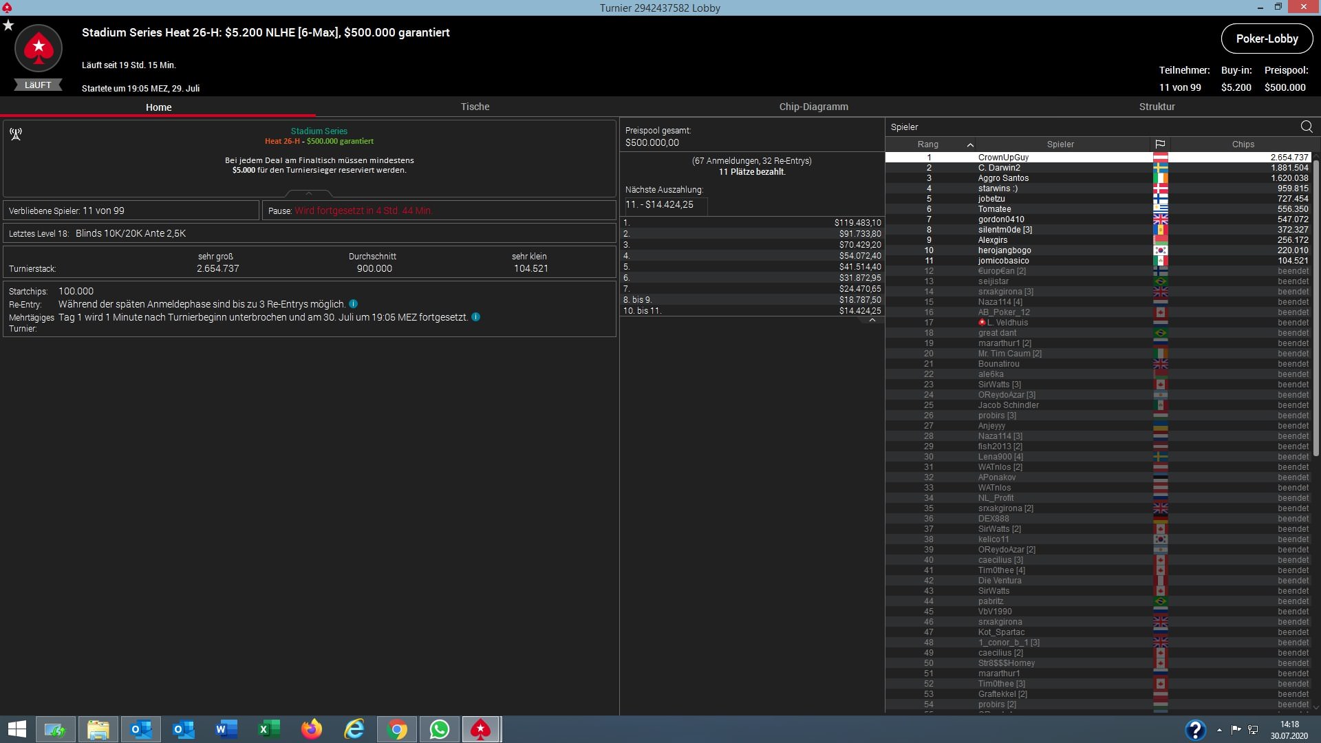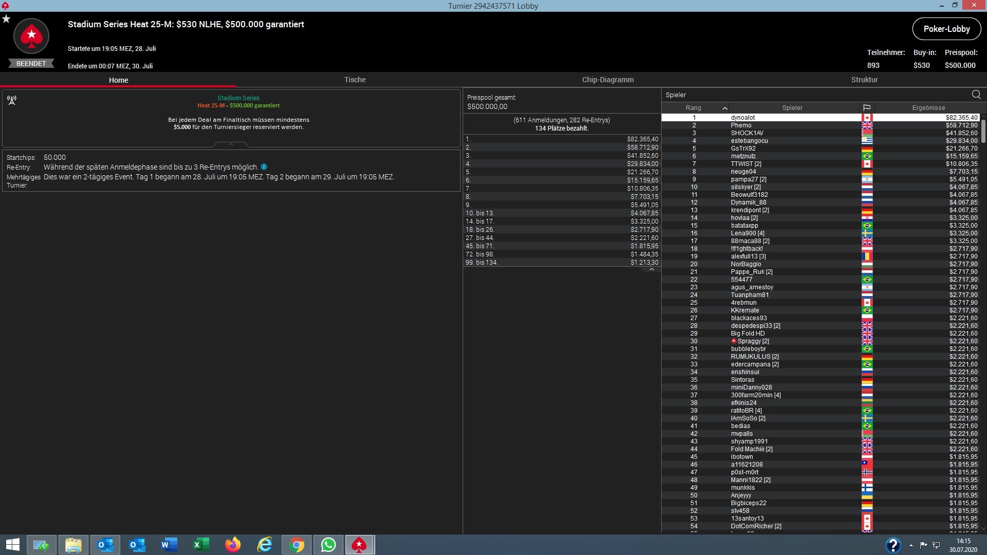 | 2020-07-31 19:05:00 | Stadium Series Heat 28-M: $530 NLHE [Deep][Stack], $500K Gtd | 500.000 $* |