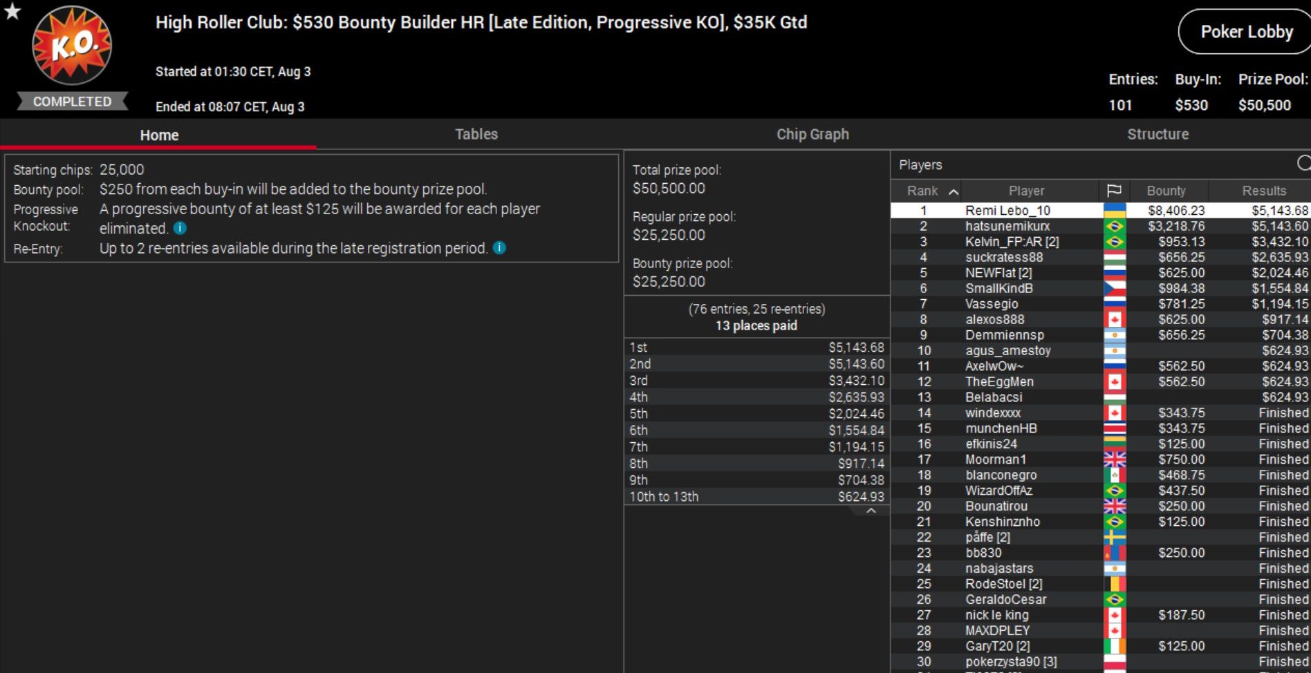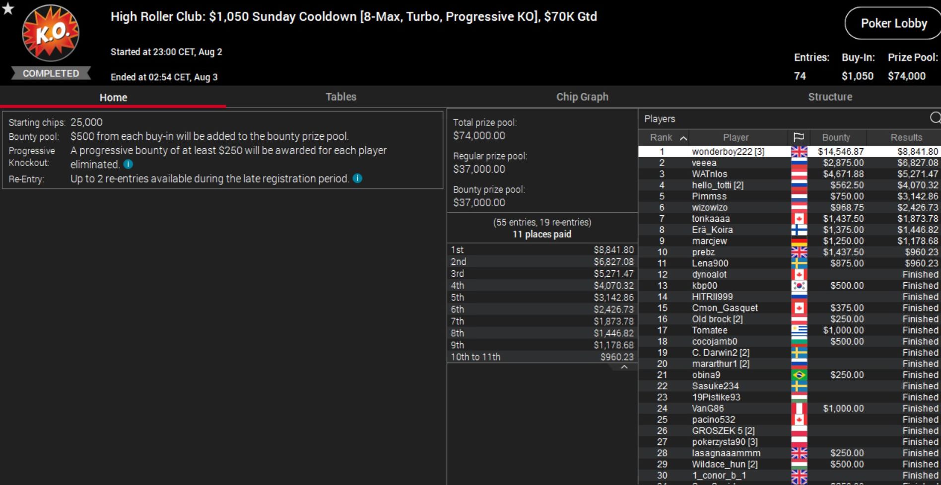 Angesichts der parallel laufenden WSOP, WPT und Stadium Series sind die regulär stattfindenden Turniere des High Roller Club auf PokerStars nicht so gut besucht wie sonst.