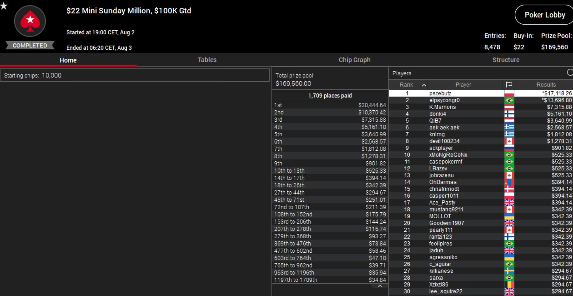 Das gute DACH-Ergebnis beim Cooldown rundete Ole „wizowizo“ Schemion ab, der als Sechster immerhin rund $3.400 kassierte.