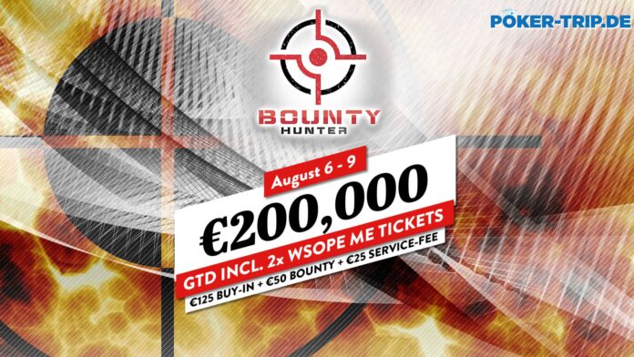 | Sun 09.08. 18:00 | Bounty Hunter Days High Roller | 30.000 EUR | 300 EUR + 100 EUR Bounty | 40 EUR |