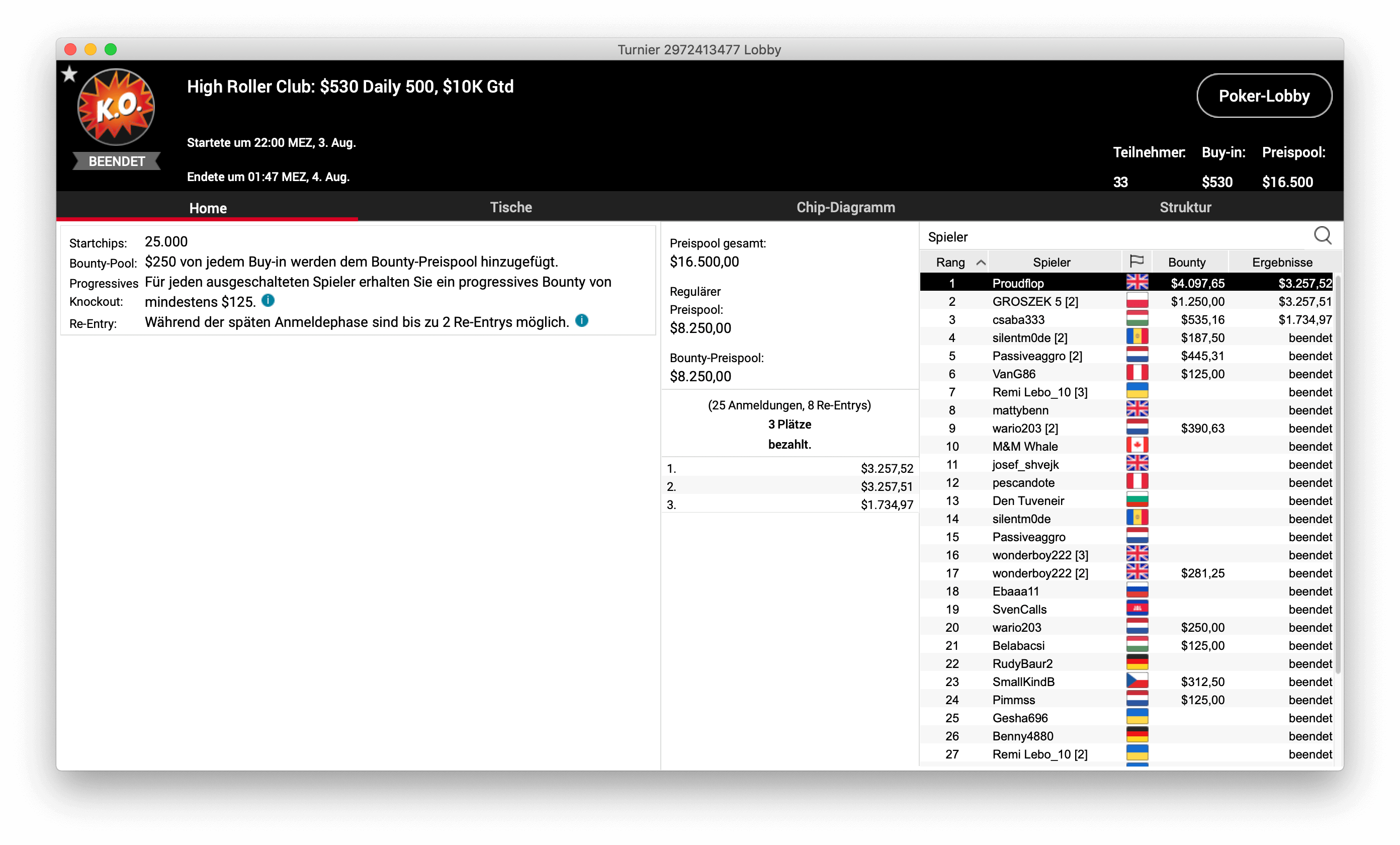 Weitere Ergebnisse des High Roller Club auf PokerStars am 03.08.2020: